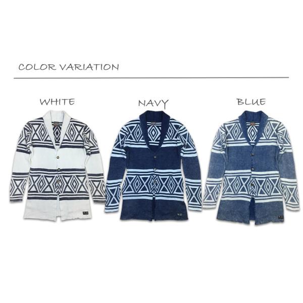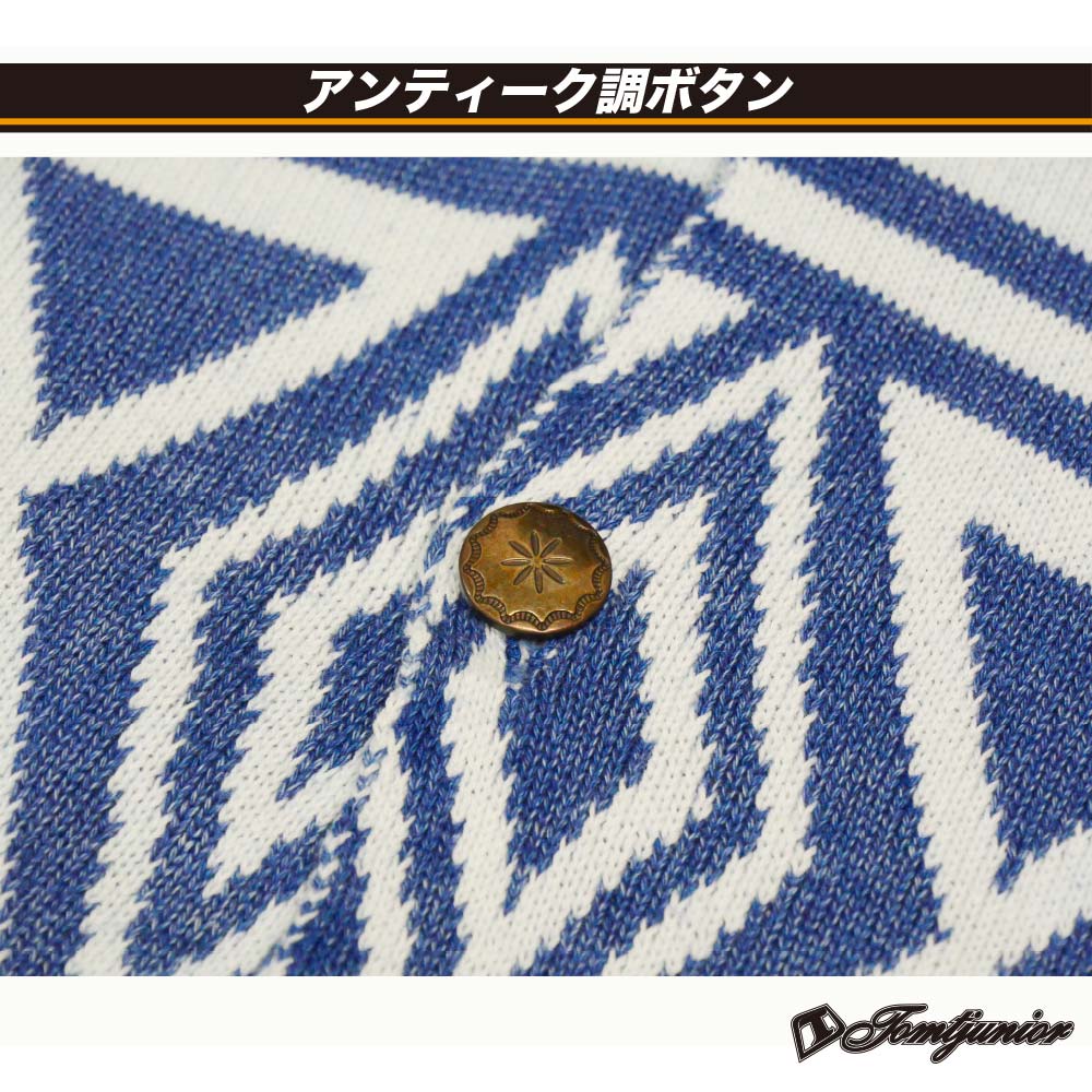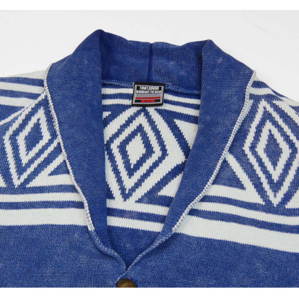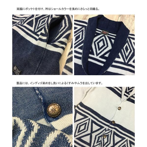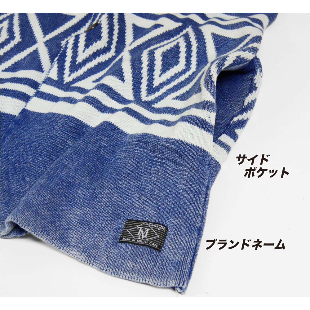 ネイティブ柄 インディゴ染め コットンニット メンズ ロングカーディガン カーディガン サーフブランド 製品洗い ウォッシュ加工 TOMTJUNIOR セーター かっこいい おしゃれ 30代 40代 50代 コーディネート カーデ ユーズド感 ざっくり 薄手
