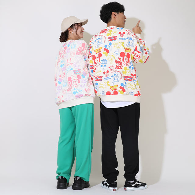 6/25限定!当選確率1/2 最大100%Pバック★NEW 親子お揃い ディズニー 総柄 トレーナー 9110A ベビードール BABYDOLL 子供服 大人 ユニセックス 男女兼用 レディース メンズ DISNEY★Collection