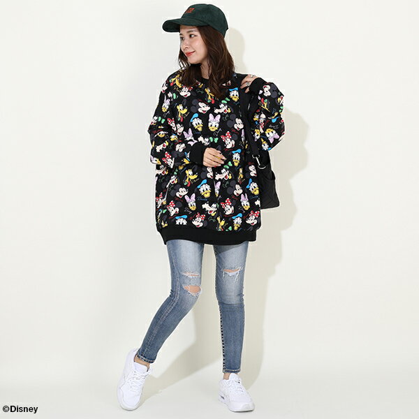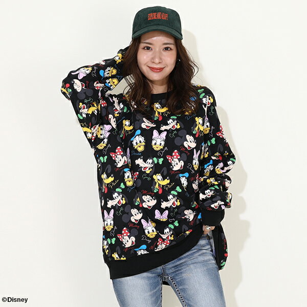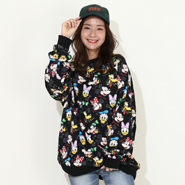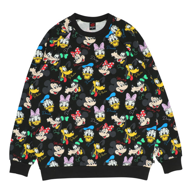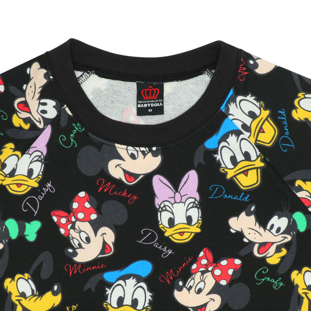 9/9NEW ディズニー 親子お揃い 通販限定 レトロ キャラクター総柄 トレーナー 9893A ベビードール BABYDOLL 大人 ユニセックス 男女兼用 レディース メンズ ミッキー ミニー ドナルド デイジー グーフィー プルート