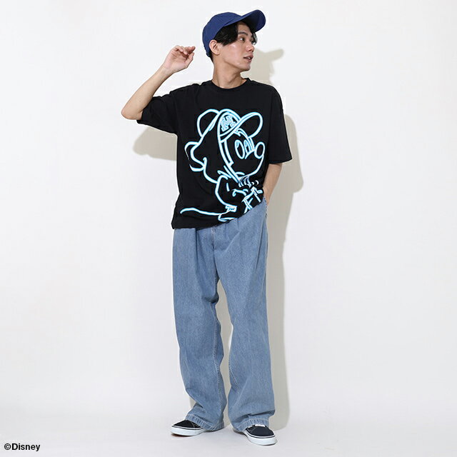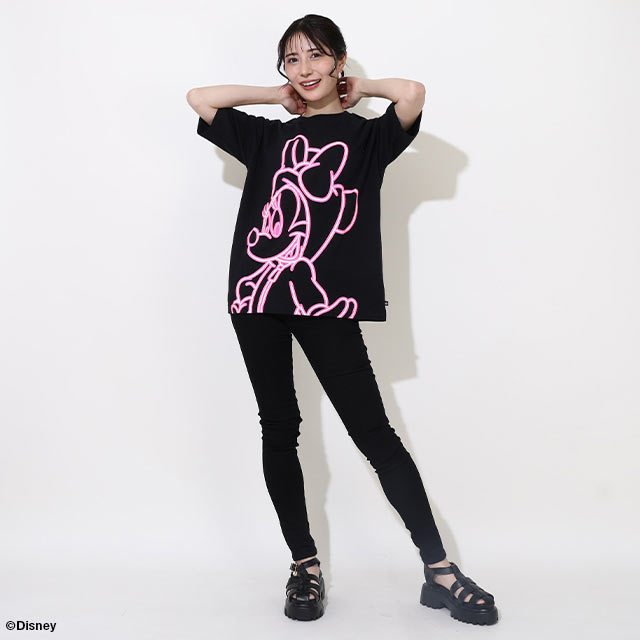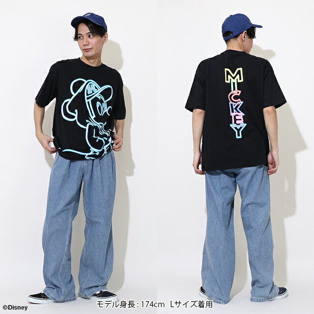 3/17NEW 親子お揃い ディズニー ネオンキャラクターTシャツ 0322A ベビードール BABYDOLL 大人 ユニセックス 男女兼用 レディース メンズ ミッキー ミニー
