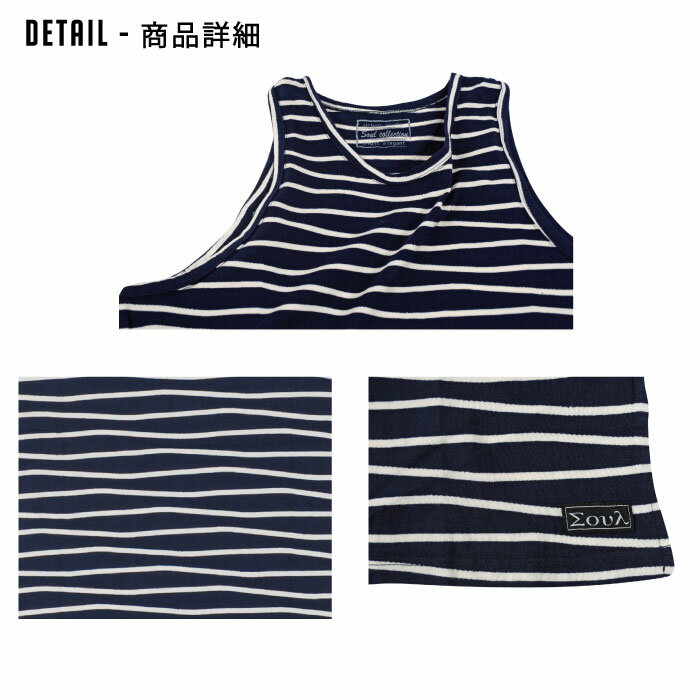 【セール】 SOUL メンズ タンクトップ タンク ノースリーブ ボーダータンク ウェーブボーダー シンプル カジュアル 大人カジュアル 綿 コットン グレー ネイビー ソウル 16822026