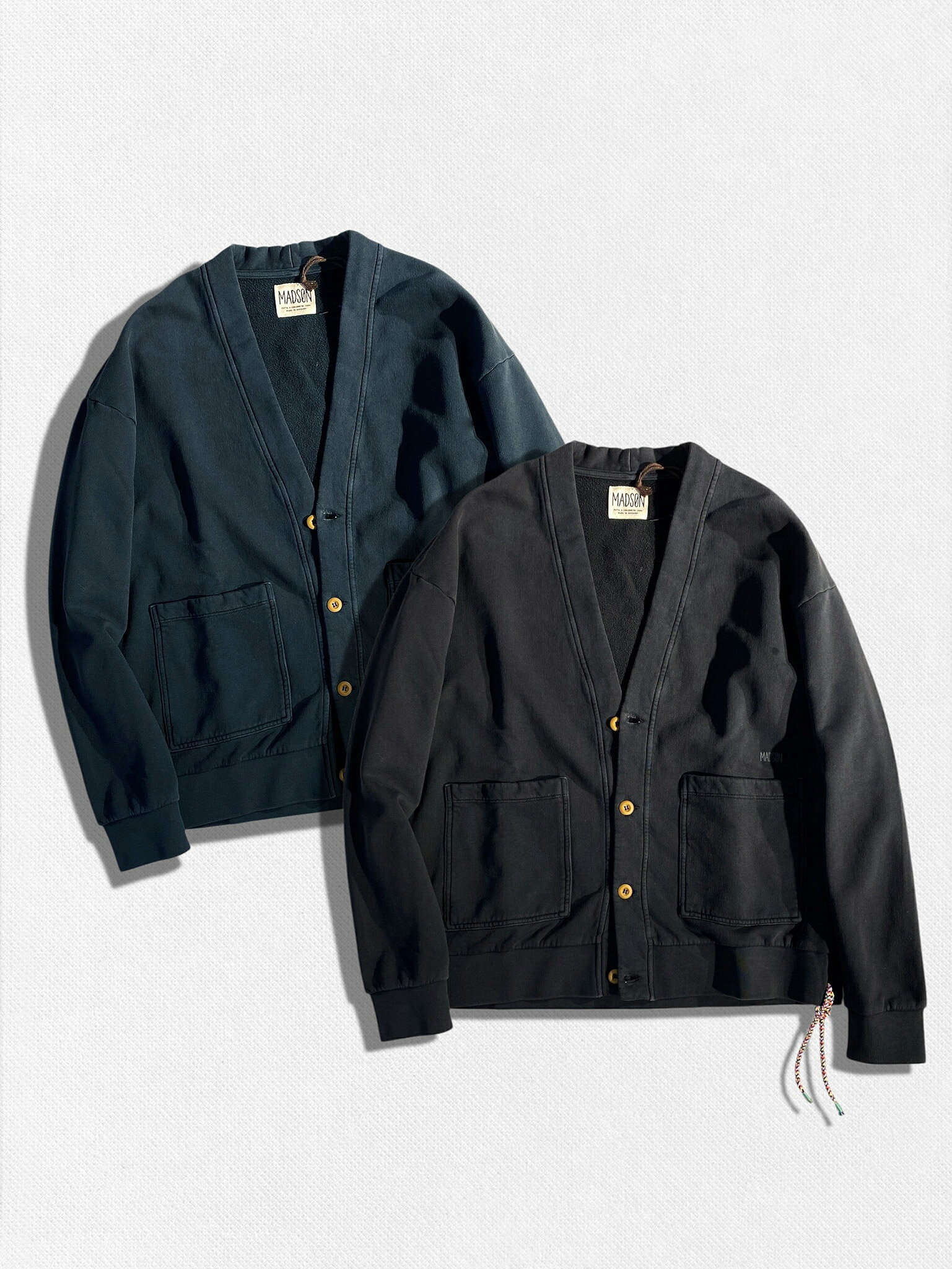 【定価26,400円(税込)】MADSON マッドソン サッと羽織るだけで都会的な品のあるリラックス感を演出する!ブランドロゴ入りウォッシュ加工スウェットカーディガン コットン ジャケット ブルゾン オーバーサイズフィット 22040060 ネイビー 伊製 イタリア製 メンズ マドソン