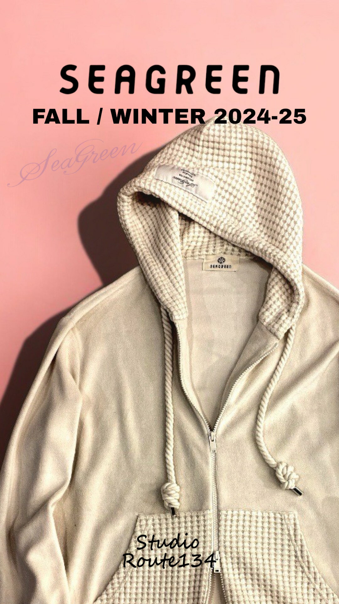 【定価28,600円(税込)】Seagreen × Studio Route134 シーグリーン×スタジオルート134 パイルとビッグワッフルをドッキングさせたニューフェイス!フレグラント(香り)付 コラボ別注マリンロープ付き コンビネワッフルパーカー アイボリー 鬼ワッフル MSOT24A8334-M メンズ