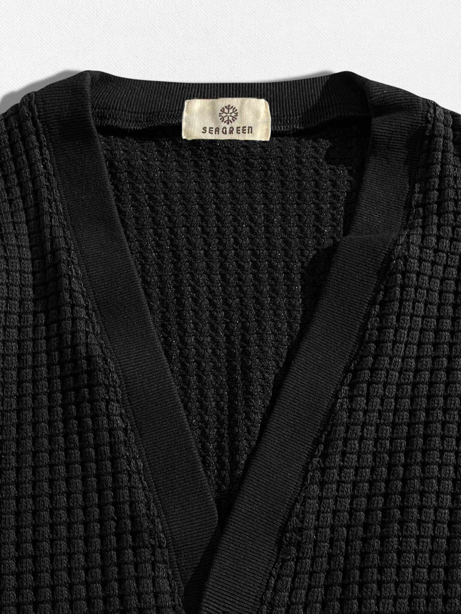 【定価26,400円(税込)】Seagreen -シーグリーン- 大人の甘さを上品に醸し出す人気シリーズ!リラクシーな着心地で潮感溢れるフレグラント(香り)付き ビックワッフル カーディガン 鬼ワッフル ビッグ ブラック MSEA25S8282 メンズ 日本製