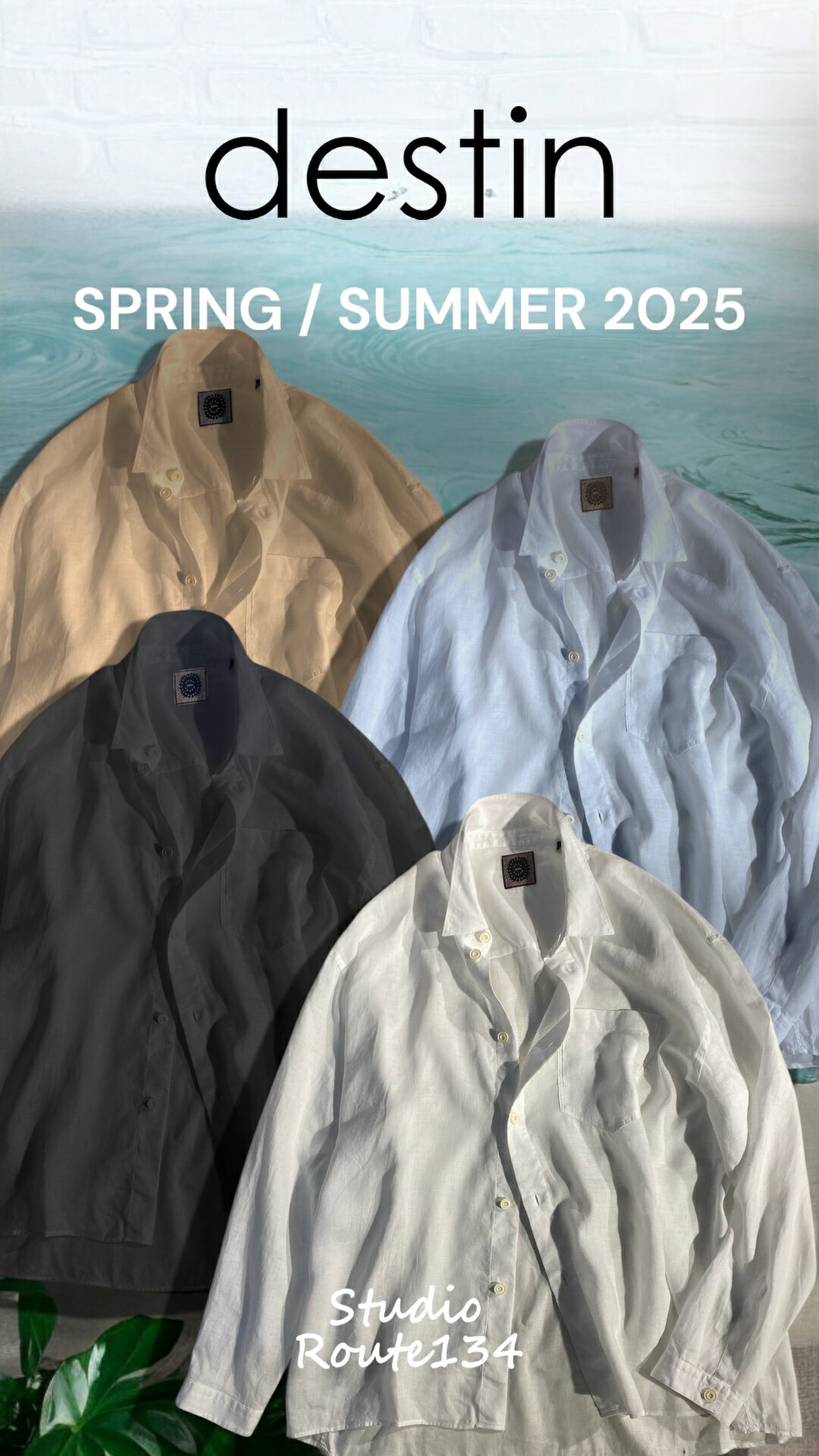 【定価44,000円(税込)】destin デスティン リラクシーなオーバーサイズフィット!上質素材が生み出す極上かつ軽やかな着心地がクセになる1枚!リネンシャツ 長袖 シャツアウター 麻 リネン ホワイト ブラック スカイブルー グレー サンド donny-ls-u-s25 メンズ イタリア製