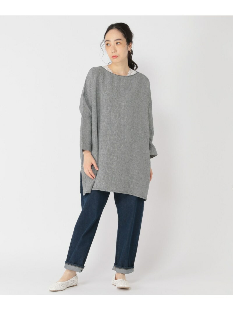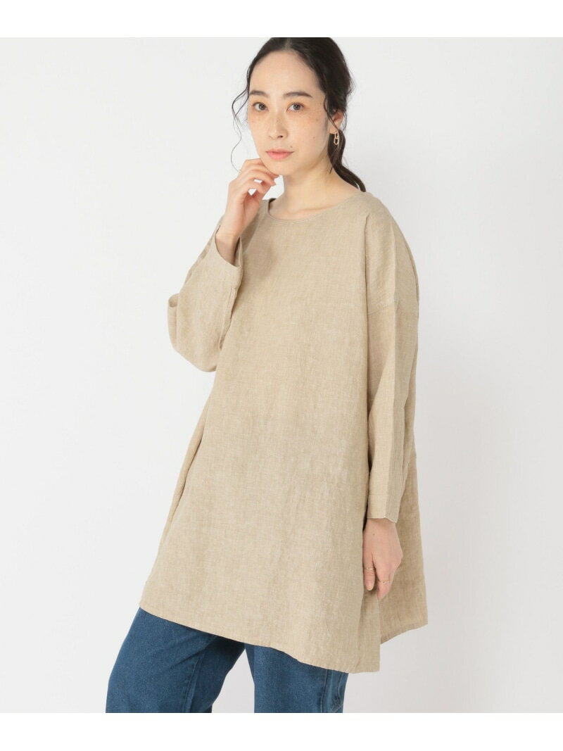 【SALE/50%OFF】リネン100ダブルフロントワイドチュニック[プチ・プラスサイズあり] studio CLIP スタディオクリップ トップス その他のトップス ベージュ ブルー【RBA_E】[Rakuten Fashion]