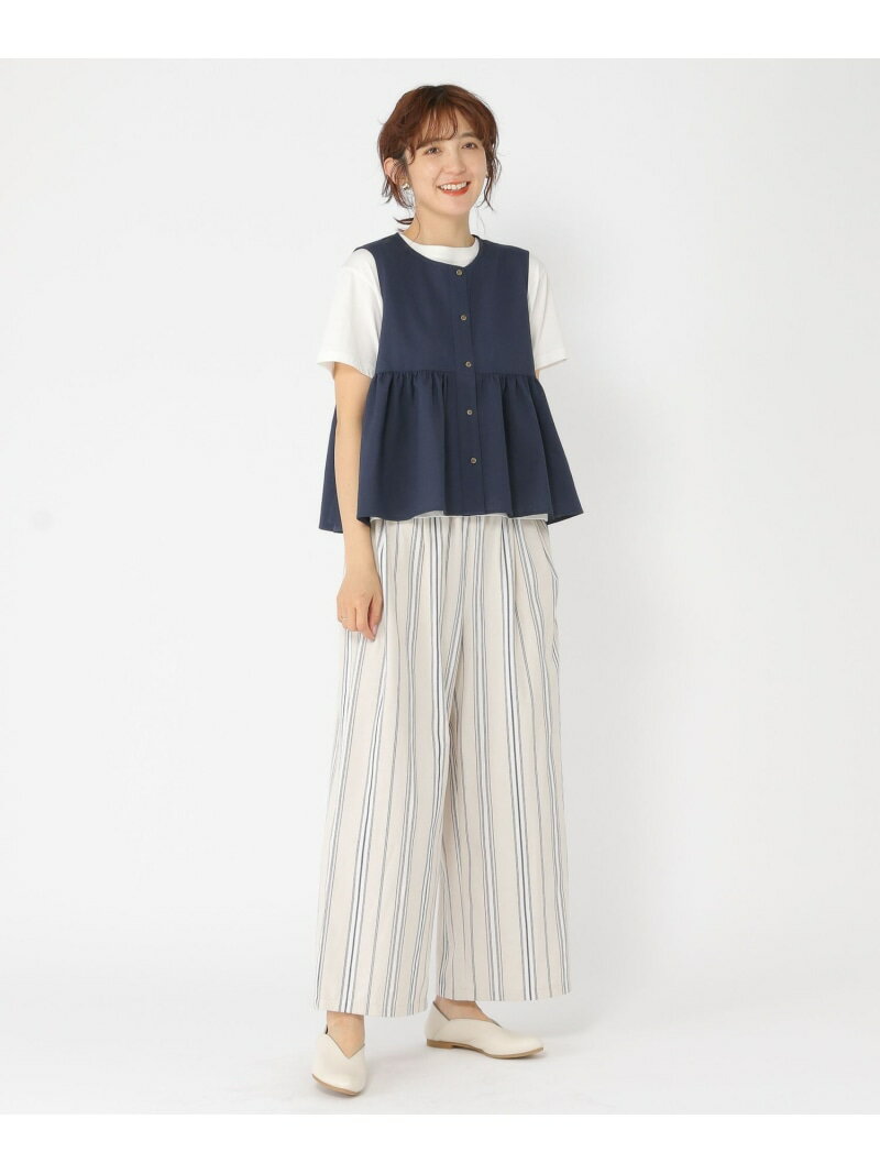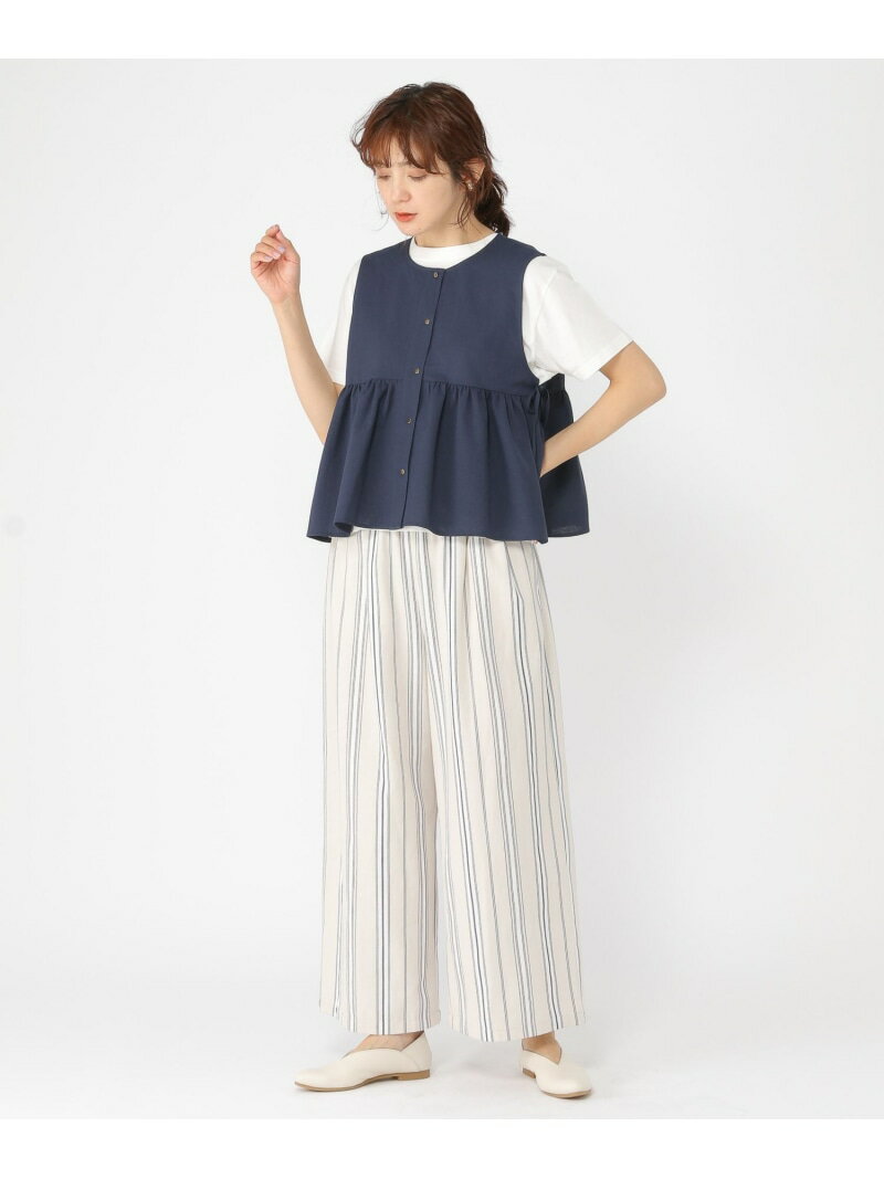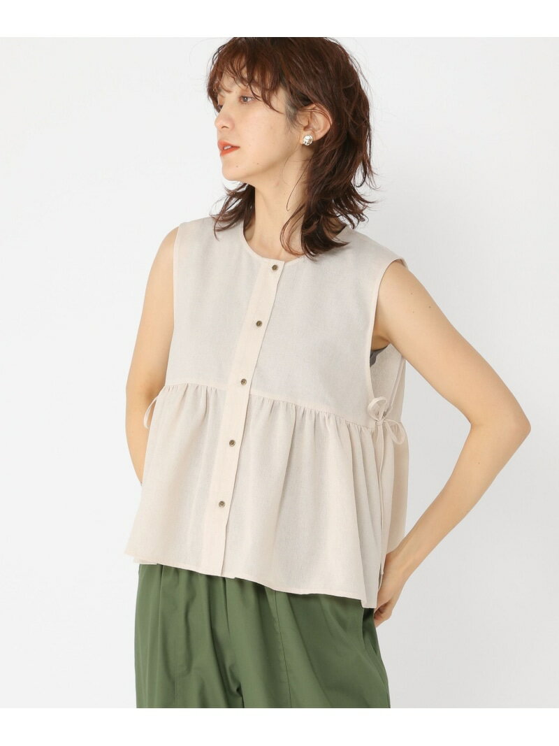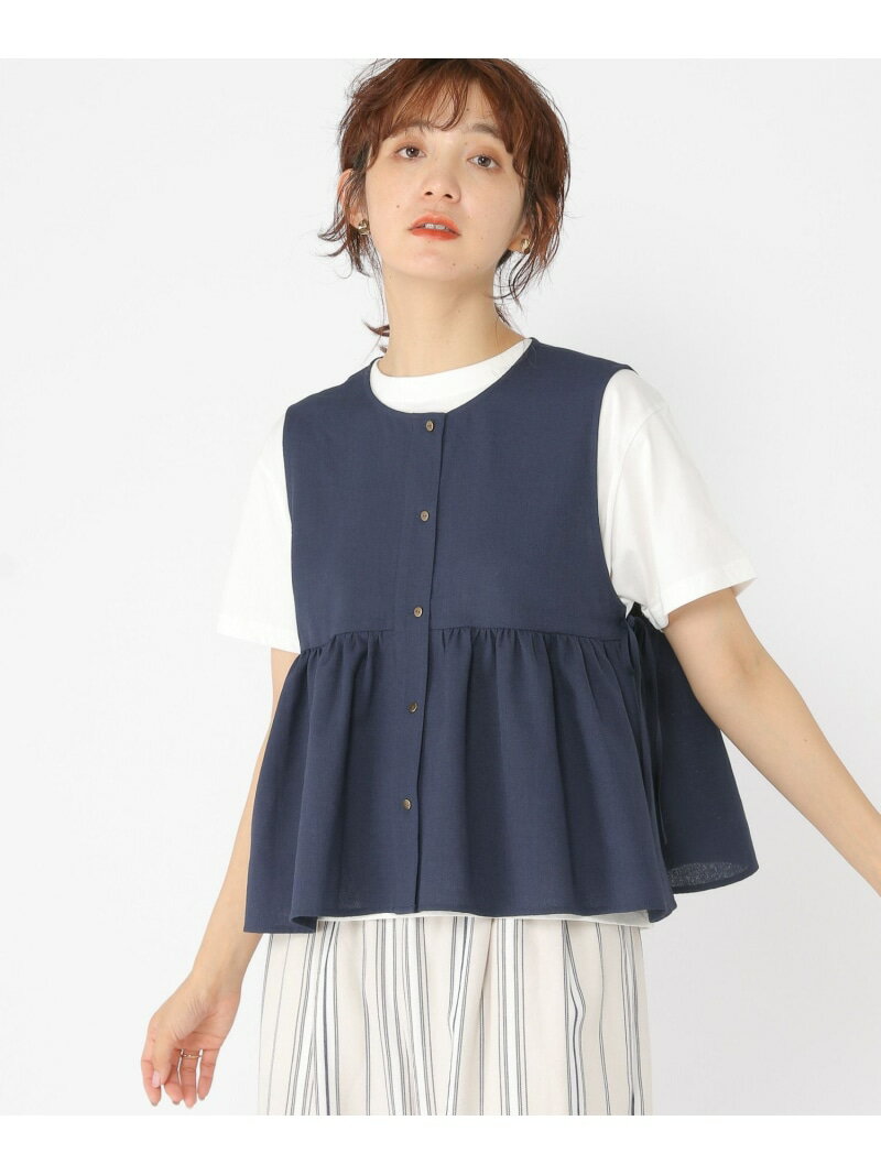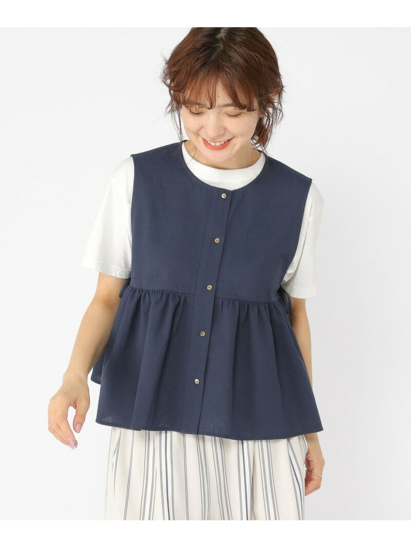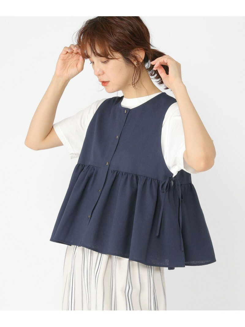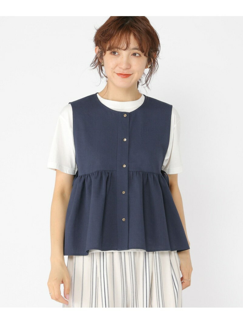 リネンライクギャザージレ studio CLIP スタディオクリップ トップス ベスト・ジレ ベージュ ネイビー【送料無料】[Rakuten Fashion]