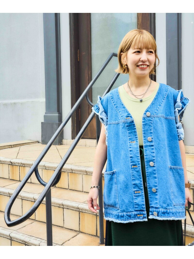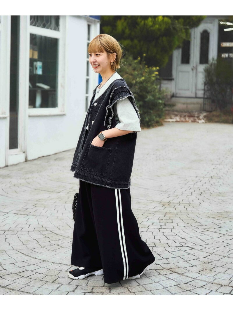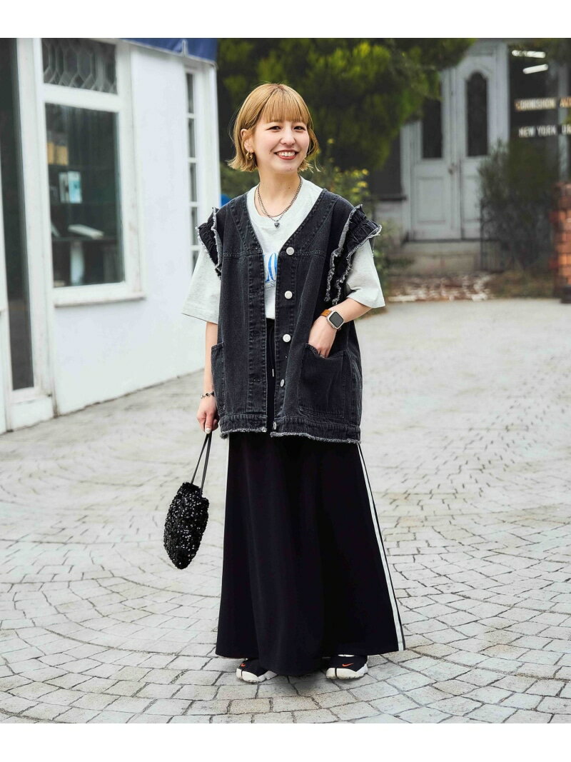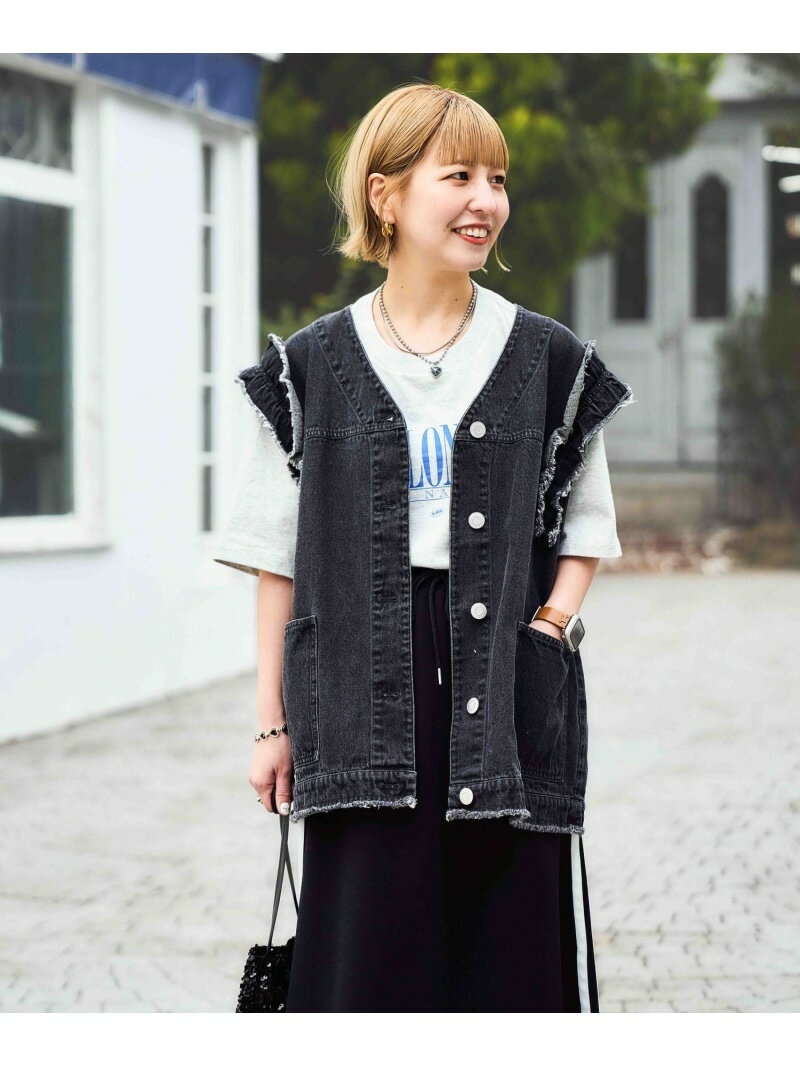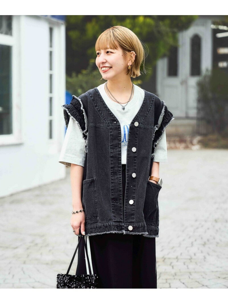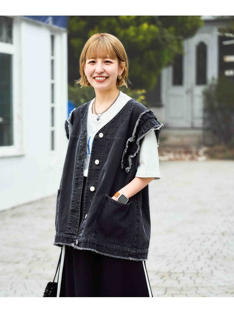 【CLIP BY STAFF/moezo企画】フリルデニムベスト studio CLIP スタディオクリップ トップス ベスト・ジレ ブラック【送料無料】[Rakuten Fashion]