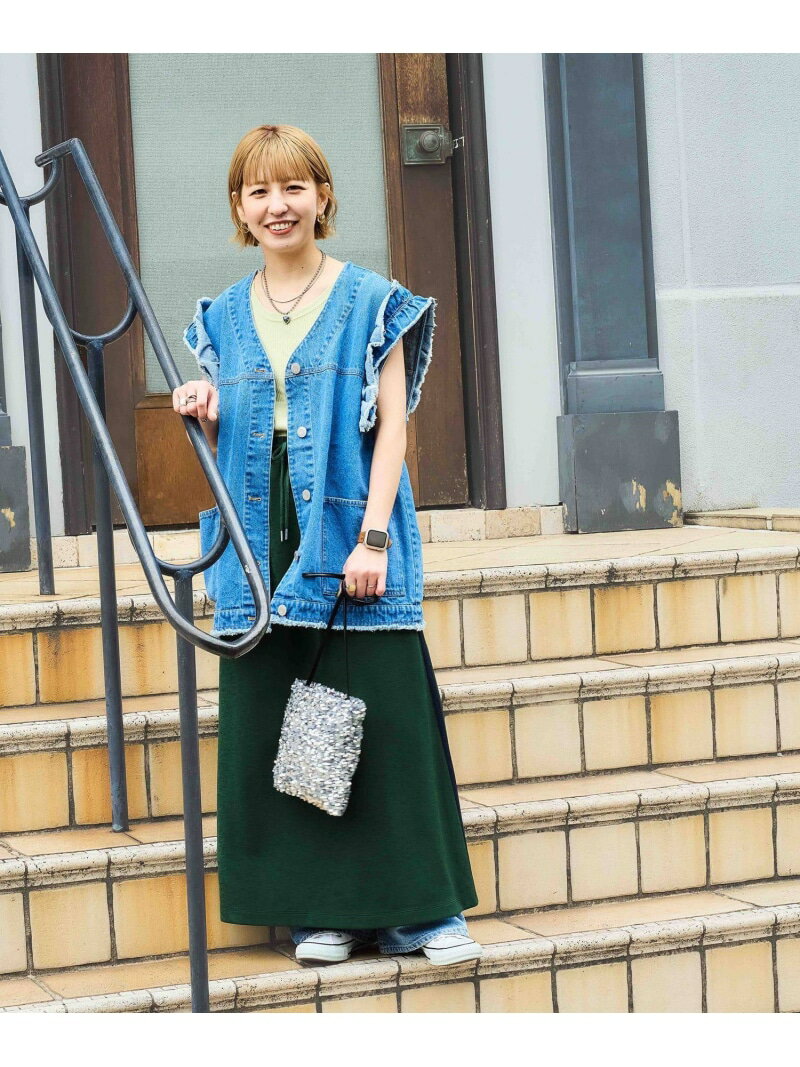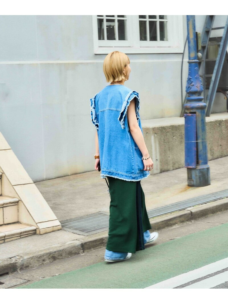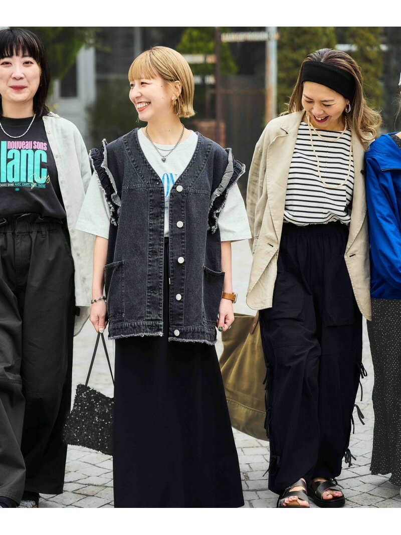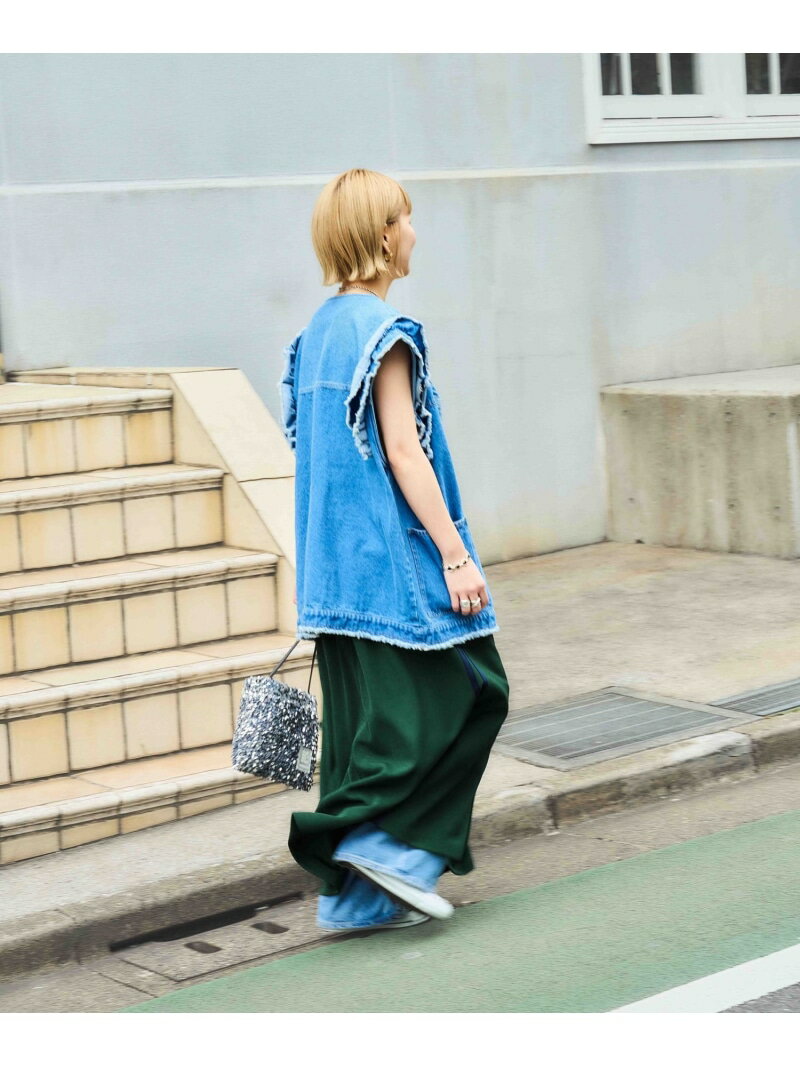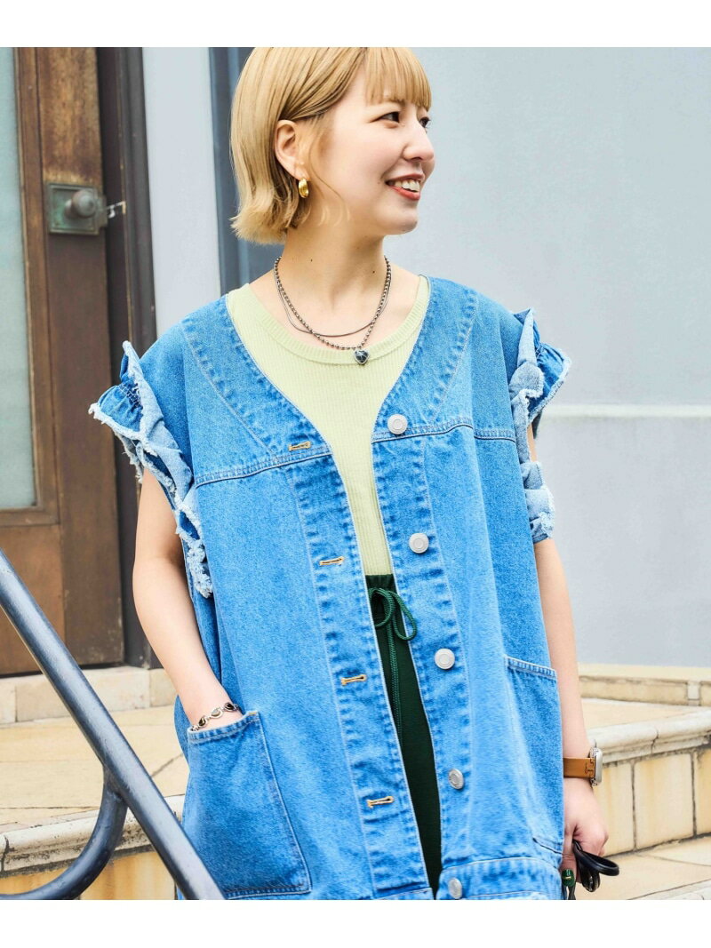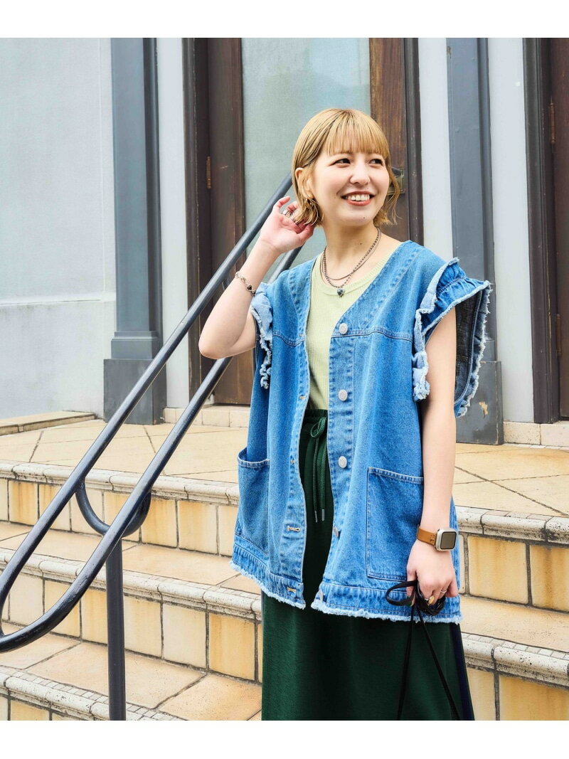 【CLIP BY STAFF/moezo企画】フリルデニムベスト studio CLIP スタディオクリップ トップス ベスト・ジレ ブラック【送料無料】[Rakuten Fashion]