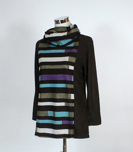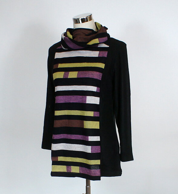 日本製 切替デザインチュニック(M L LL 3L)パープル ターコイズ 2色【秋冬】【お買い物マラソン協賛ポイント最大45.5倍】