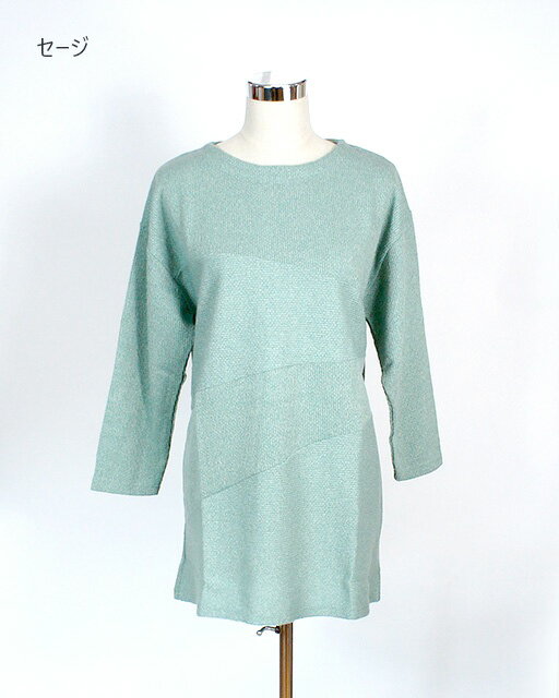 ふんわり暖か!杢調素材 切替デザインチュニック(M~5L)ネイビー・グレー・ターコイズ・ライム・コーラル・セージ・アプリコット 7色【秋冬】