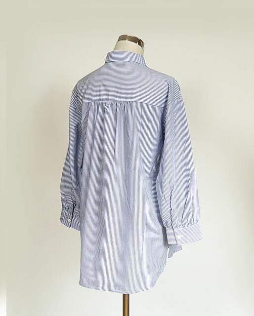 残りわずか!春の装いに 胸元にエレガントな花柄刺しゅう シャツチュニック 透け感(M~3L)オフホワイト・ブルーストライプ 2色