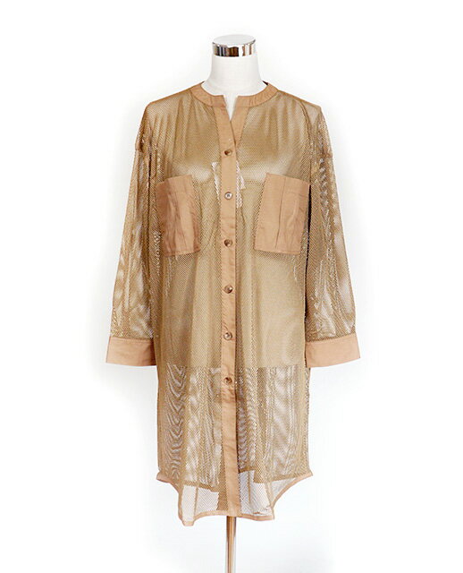 大きいサイズ シンプルコーデを格上げ さっと羽織るだけ!メッシュ素材ロングジャケット (3L 4L)オレンジ