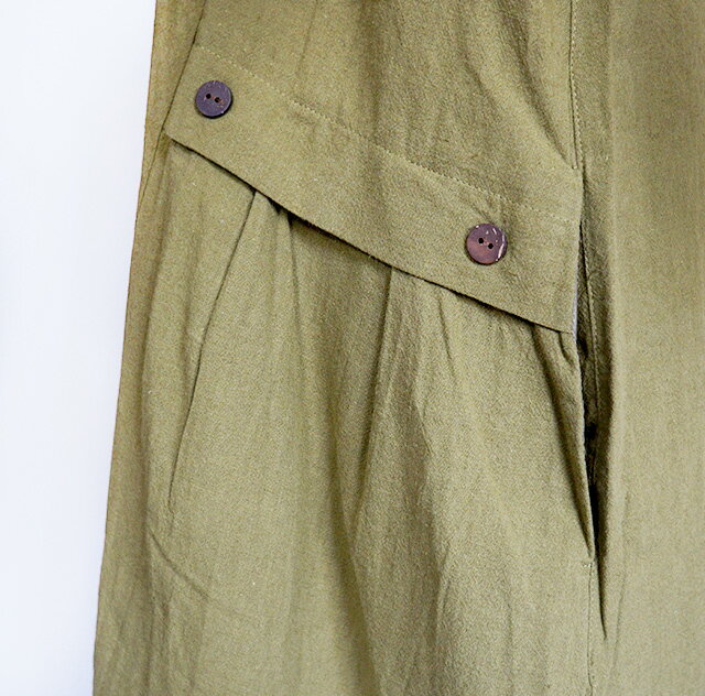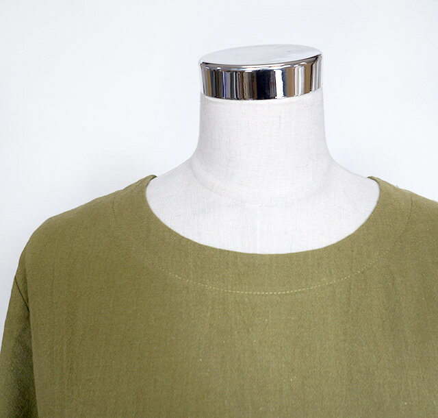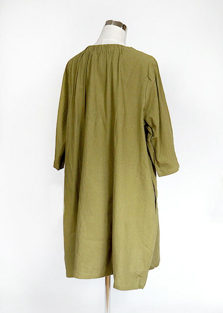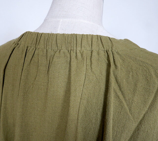 大きいサイズ さらりとした綿麻素材 ゆるっとナチュラル♪ タック使いチュニック 7分袖(4L 5L)マスタード