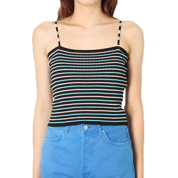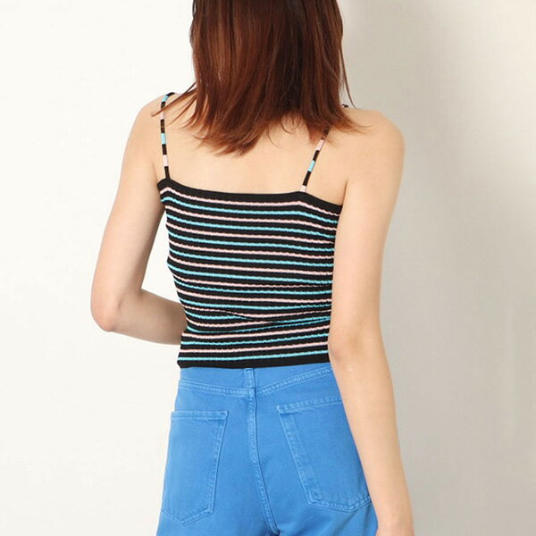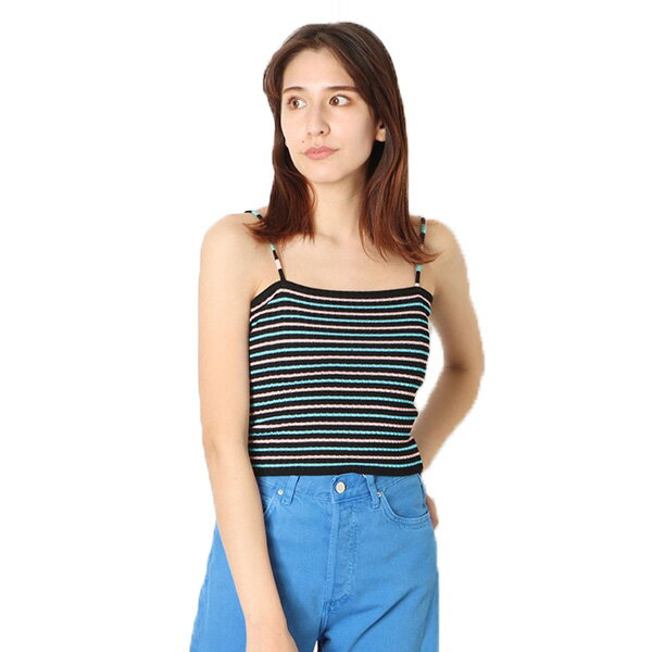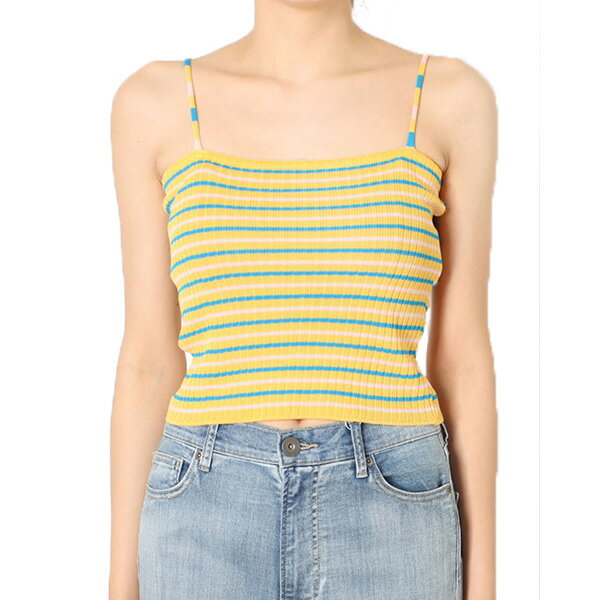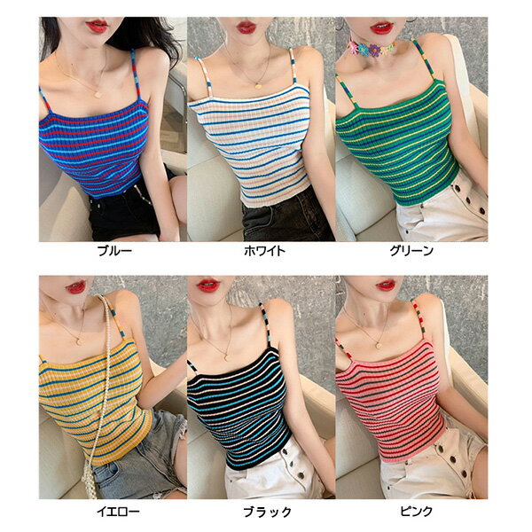 【あす楽対応】キャミソール インナー ボーダー柄 ショート丈 ストレッチ カラフル カットソー トップス レディース ブラック グリーン イエロー ホワイト ブルー ピンク