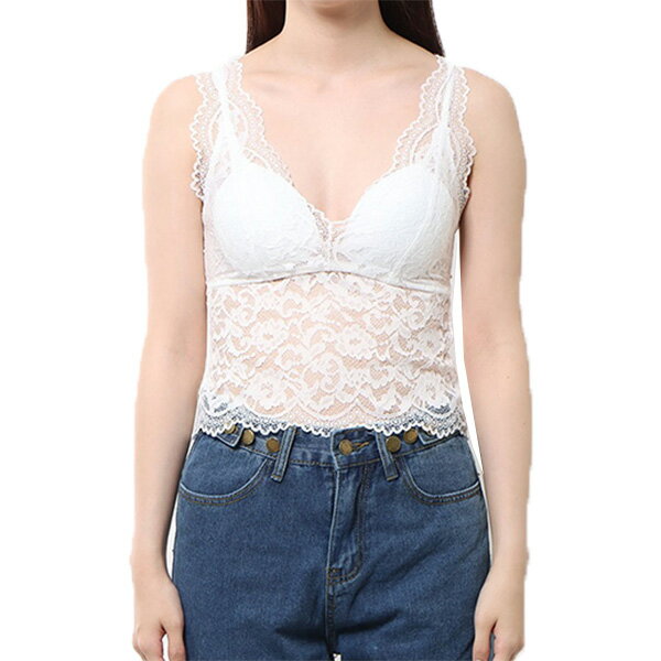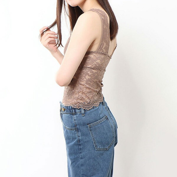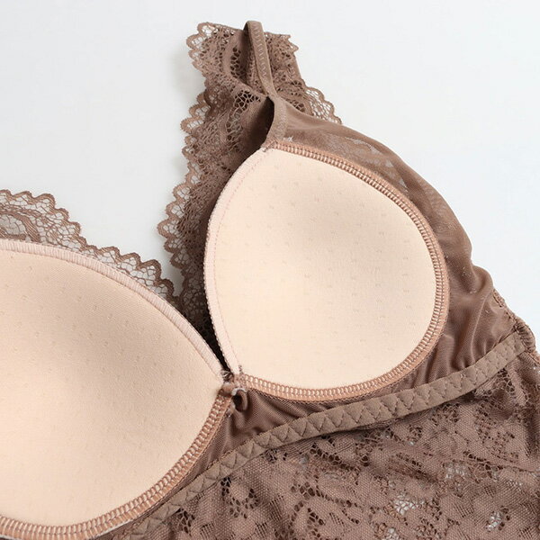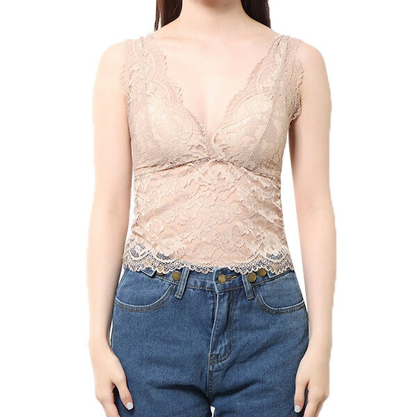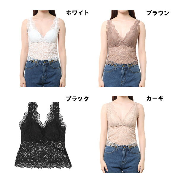インナーウェア タンクトップ パッド付き レース 下着 ランジェリー 肌着 トップス レディース ホワイト ブラウン カーキ ブラック