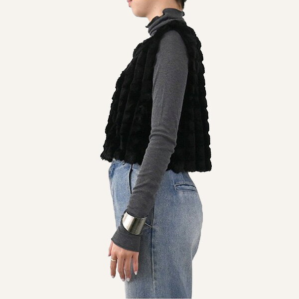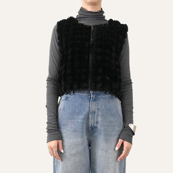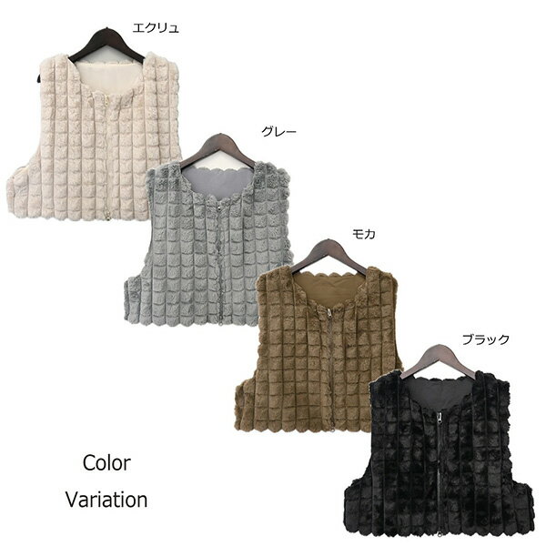 ジレ ベスト ショート丈 クロップド丈 ファー ジップアップ 無地 前開き アウター レディース エクリュ グレー モカ ブラック