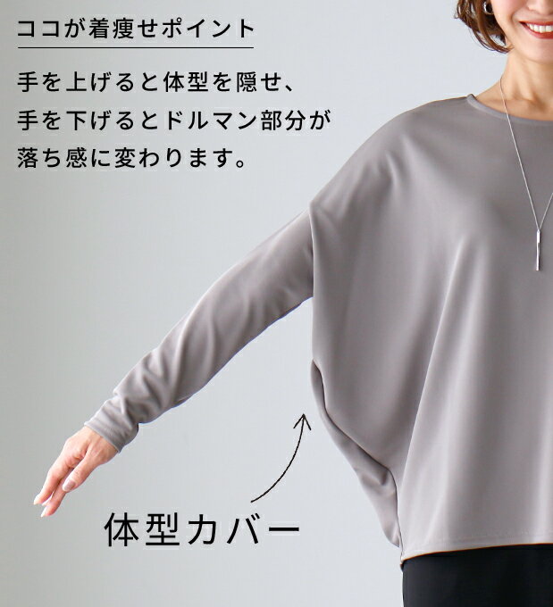 トップス レディース 長袖 カットソー Tシャツ 春 秋 冬 夏 50代 40代 30代 きれいめ 春夏 モモンガ ブルー レッド 赤 ネイビー グレー モカ ワイン カーキ 変形 ドルマン 体型カバー 着痩せ Ehre style 小柄さん Ehrestyle【F220910】