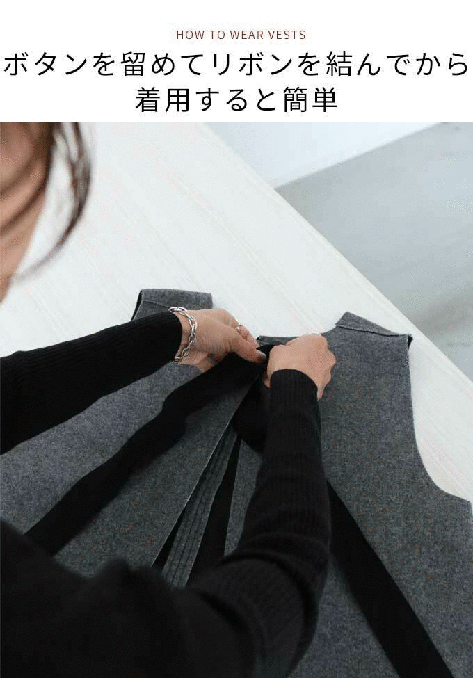 ※こちらはベスト単品です※バック リボン ベスト スタイルフォルム レディース ファション きれいめ 上品 オフィス カジュアルモカ グレー ベスト ボタン バックリボン サイドボタン 秋冬 フェルト 保温性 フリーサイズ【F191224】