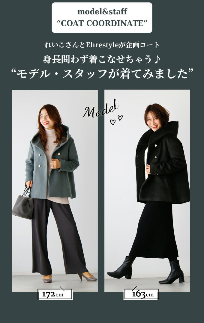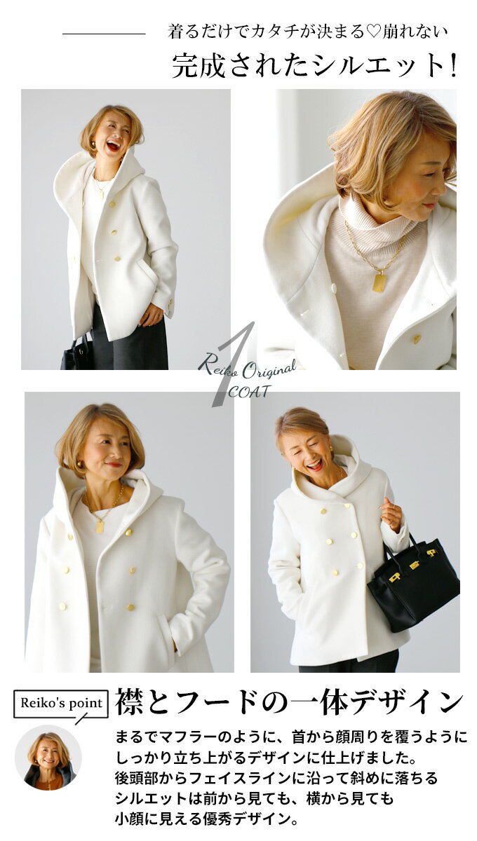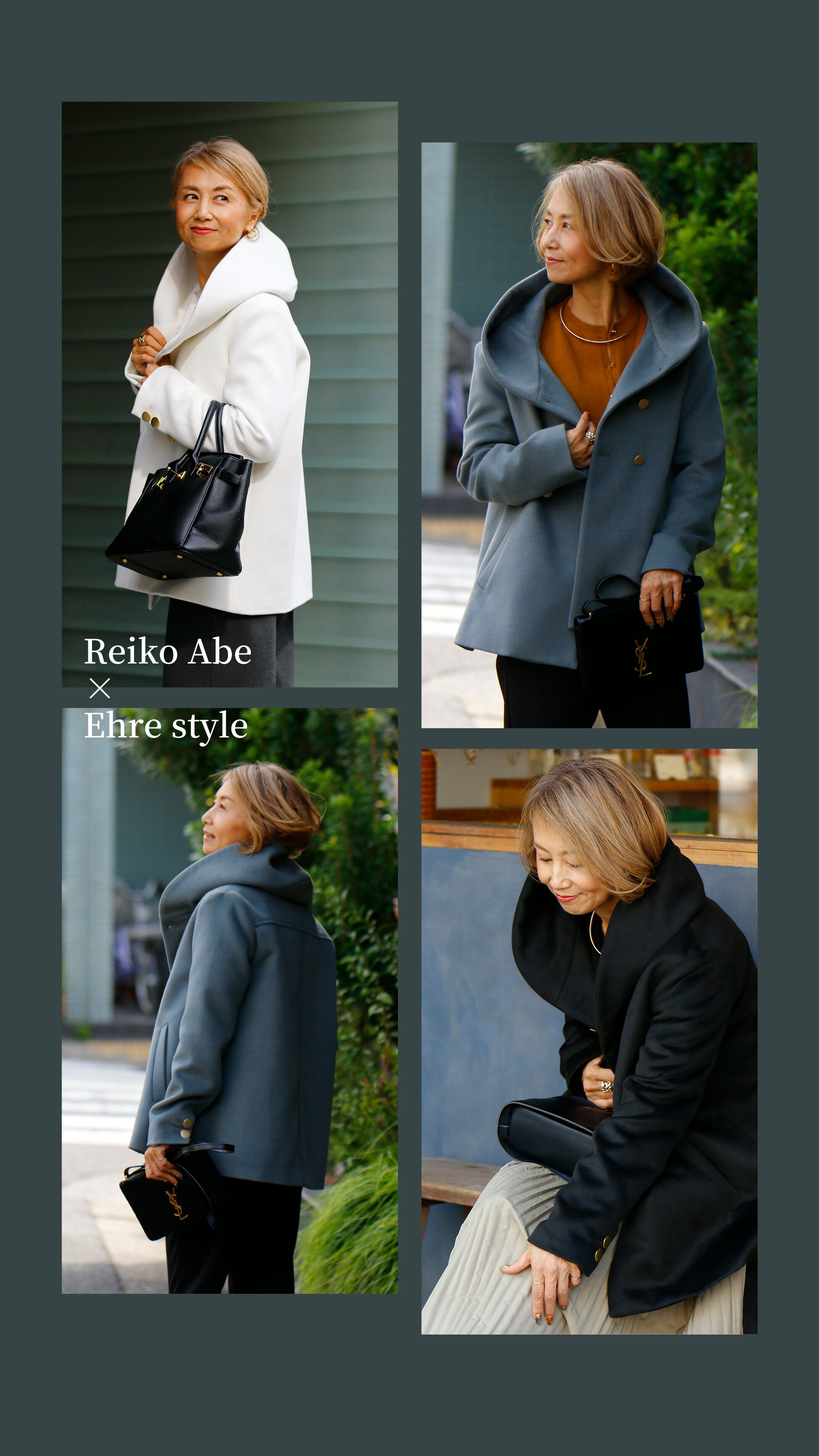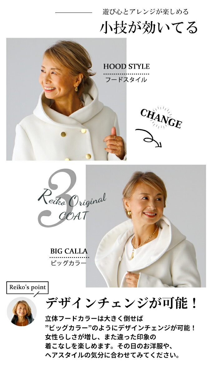コート アウター reiko abe コラボ あべ れいこ レイコ フード付き 羽織 小顔 立体フード ホワイト ダスティグリーン ブラック 白 黒 緑 Ehre style スタイル エーレスタイル【F231023】