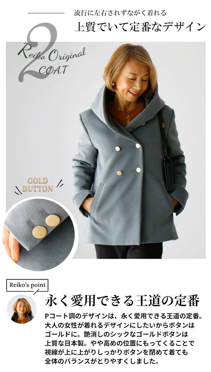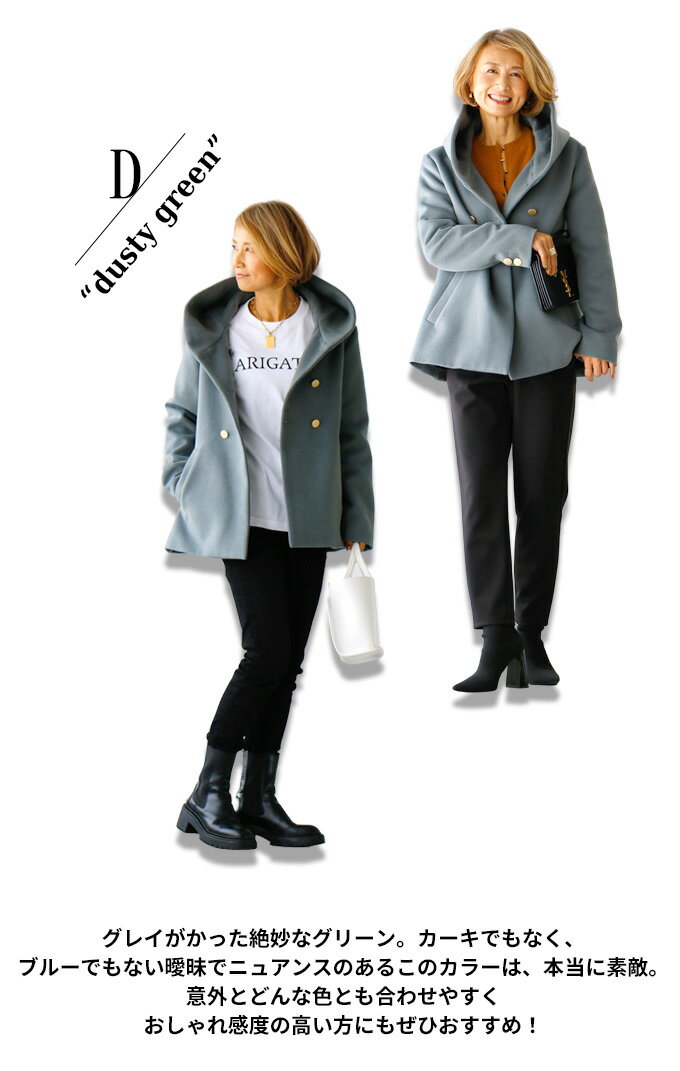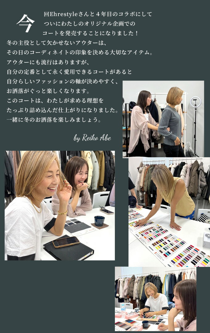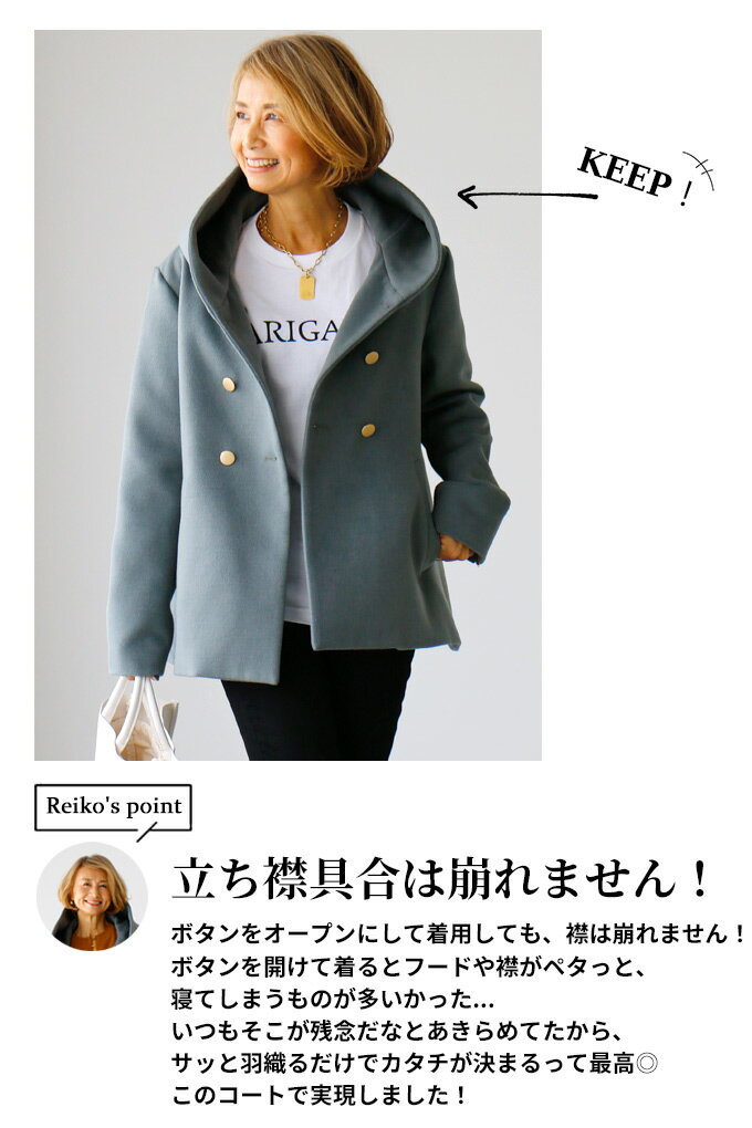 コート アウター reiko abe コラボ あべ れいこ レイコ フード付き 羽織 小顔 立体フード ホワイト ダスティグリーン ブラック 白 黒 緑 Ehre style スタイル エーレスタイル【F231023】