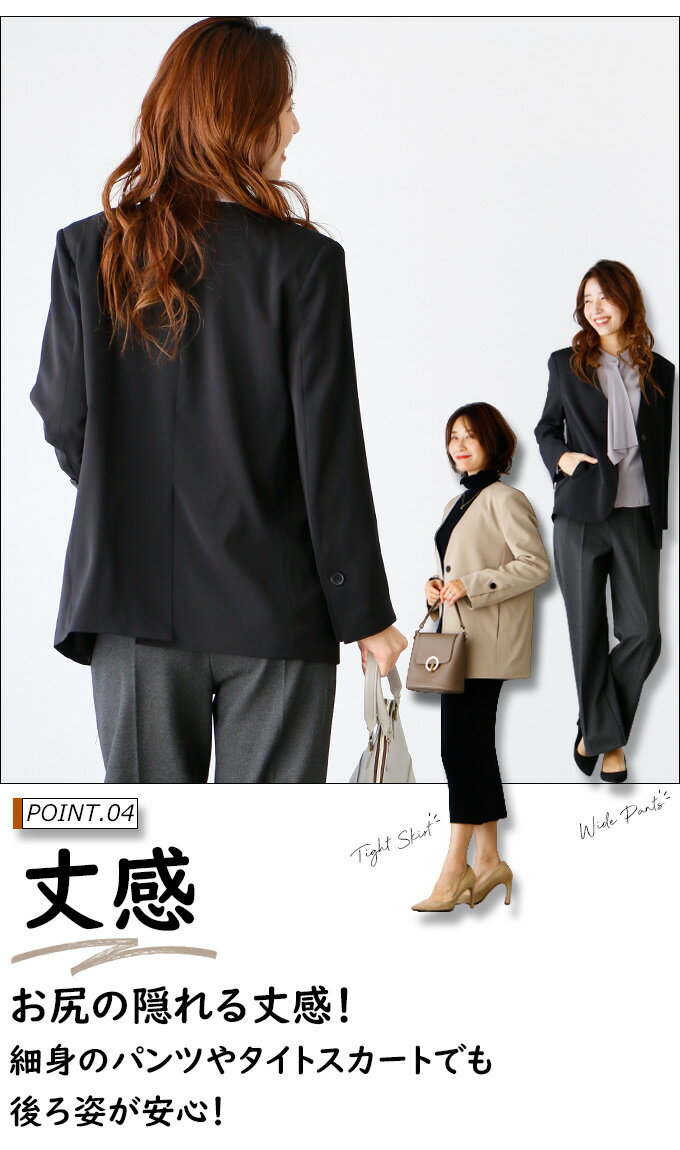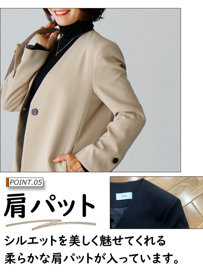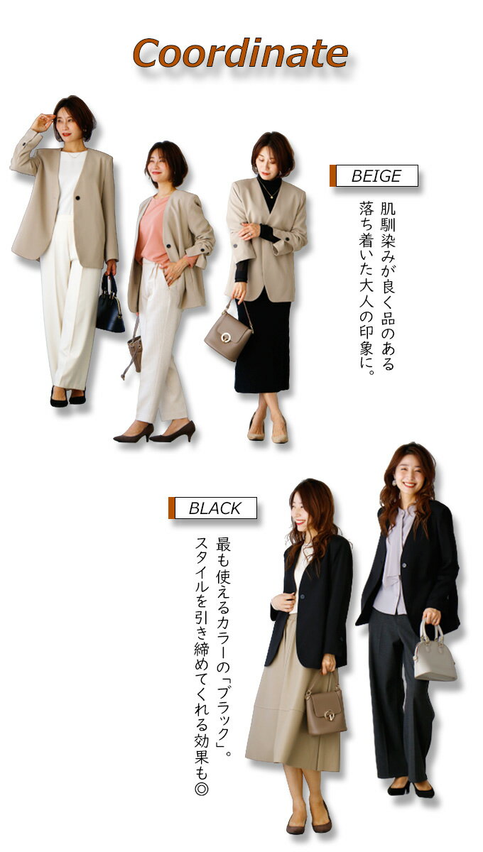 ジャケット 羽織 お仕事 とろみ スリット ノーカラー 肩パット シンプル 無地 ベージュ ブラック 黒 長袖 オフィス フリーサイズ 送料無料 レディース オフィスコーデ オフィススタイル スタイル エーレスタイル 春 Ehre style エーレスタイル【F231111】