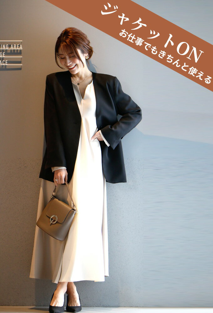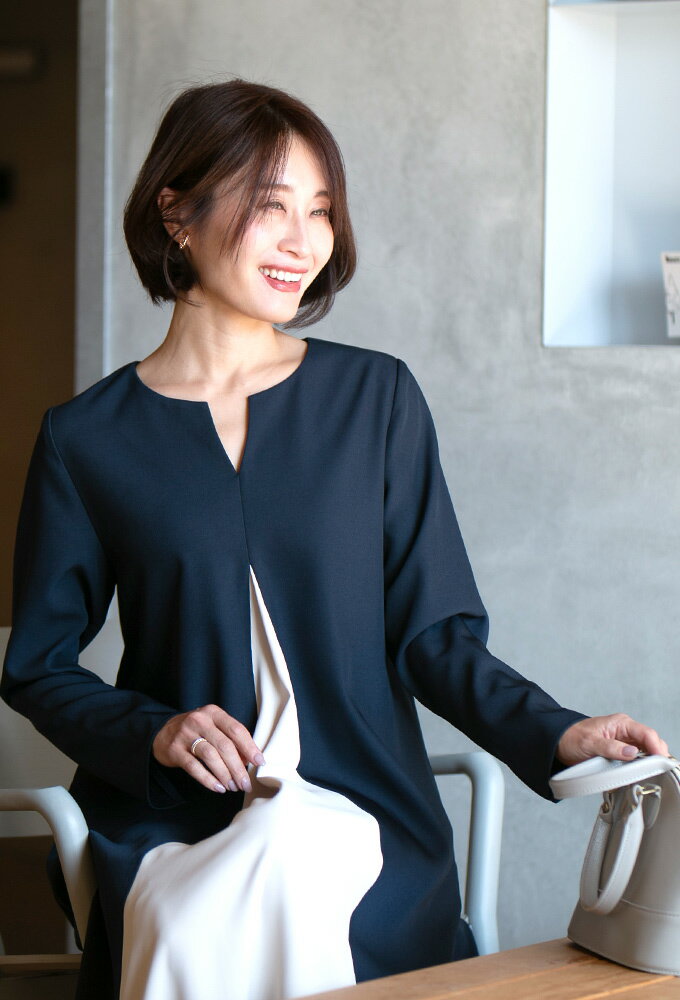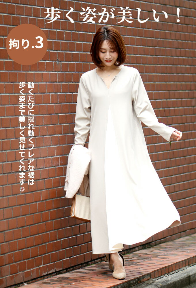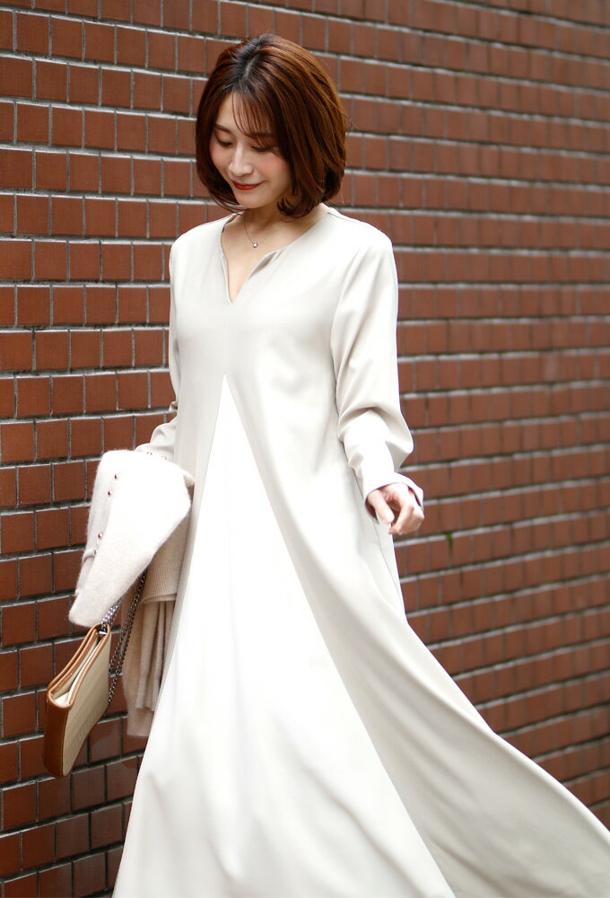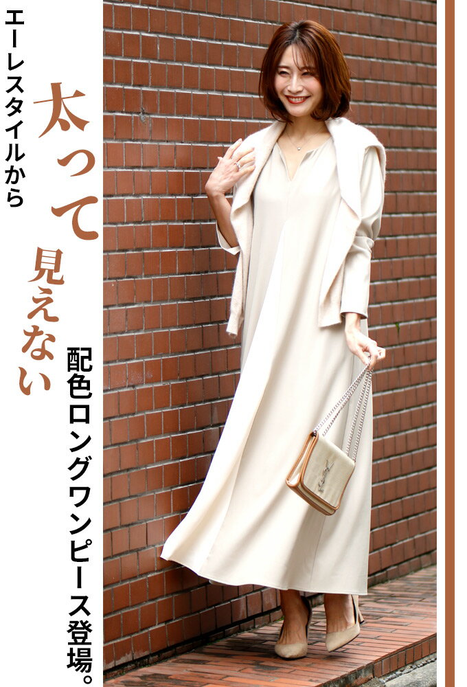 ワンピース ロングワンピース Aライン バイカラー 配色 スリット Vネック フレア レイヤード ジッパー ネイビー ベージュ Ehre style スタイル エーレスタイル【F240413】