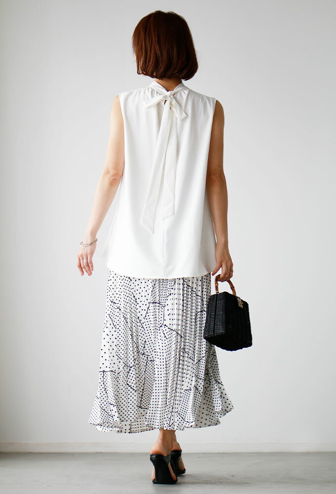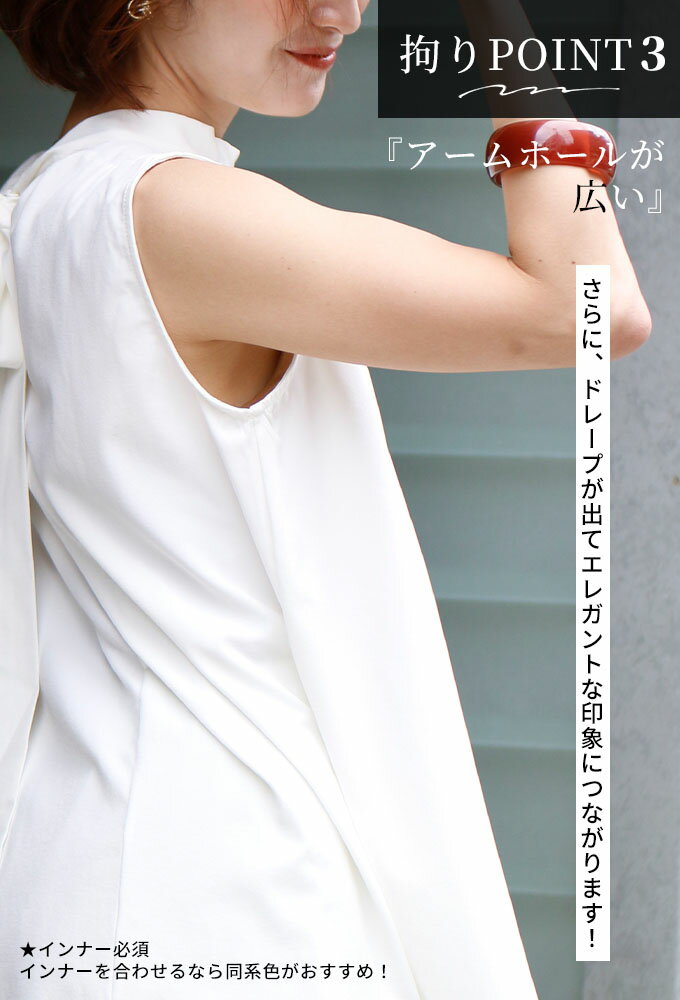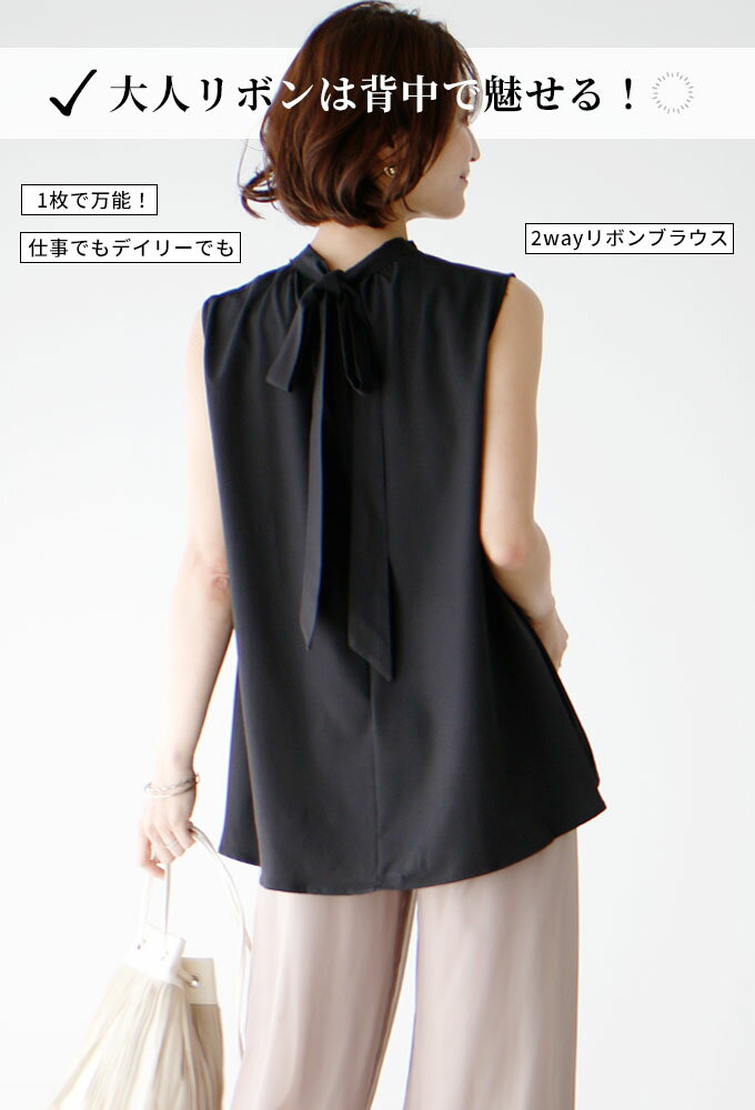 トップス ノースリーブ バックリボン ゆったり Aライン ブラウス チュニック リボン 無地 きれいめ 可愛い レディース ファッション タックギャザー ホワイト White 白 ブラック Black 黒 夏 Sサイズ Mサイズ Lサイズ Ehre style スタイル エーレスタイル【F240615】