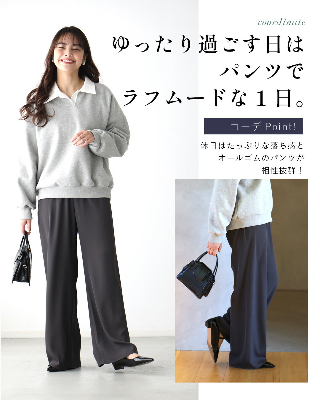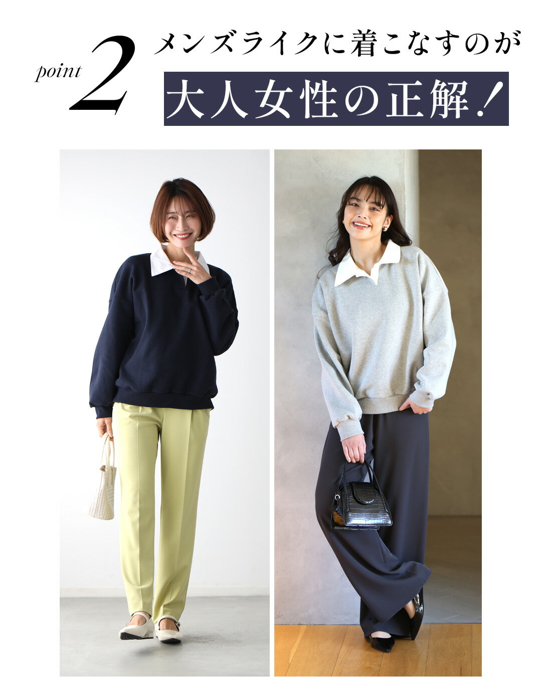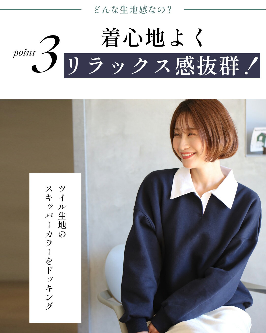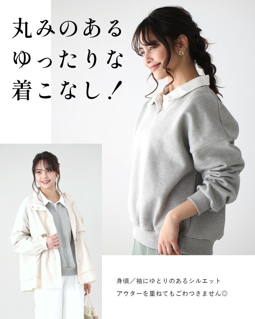 トップス スウェット 襟付 配色 バイカラー デザイントップス カジュアル キレイめ オフィスカジュアル 楽ちん 長袖 ネイビー グレー Navy Gray 紺 灰 秋 冬 春 フリーサイズ レディース ファッション Ehre style スタイル エーレスタイル【F250218】