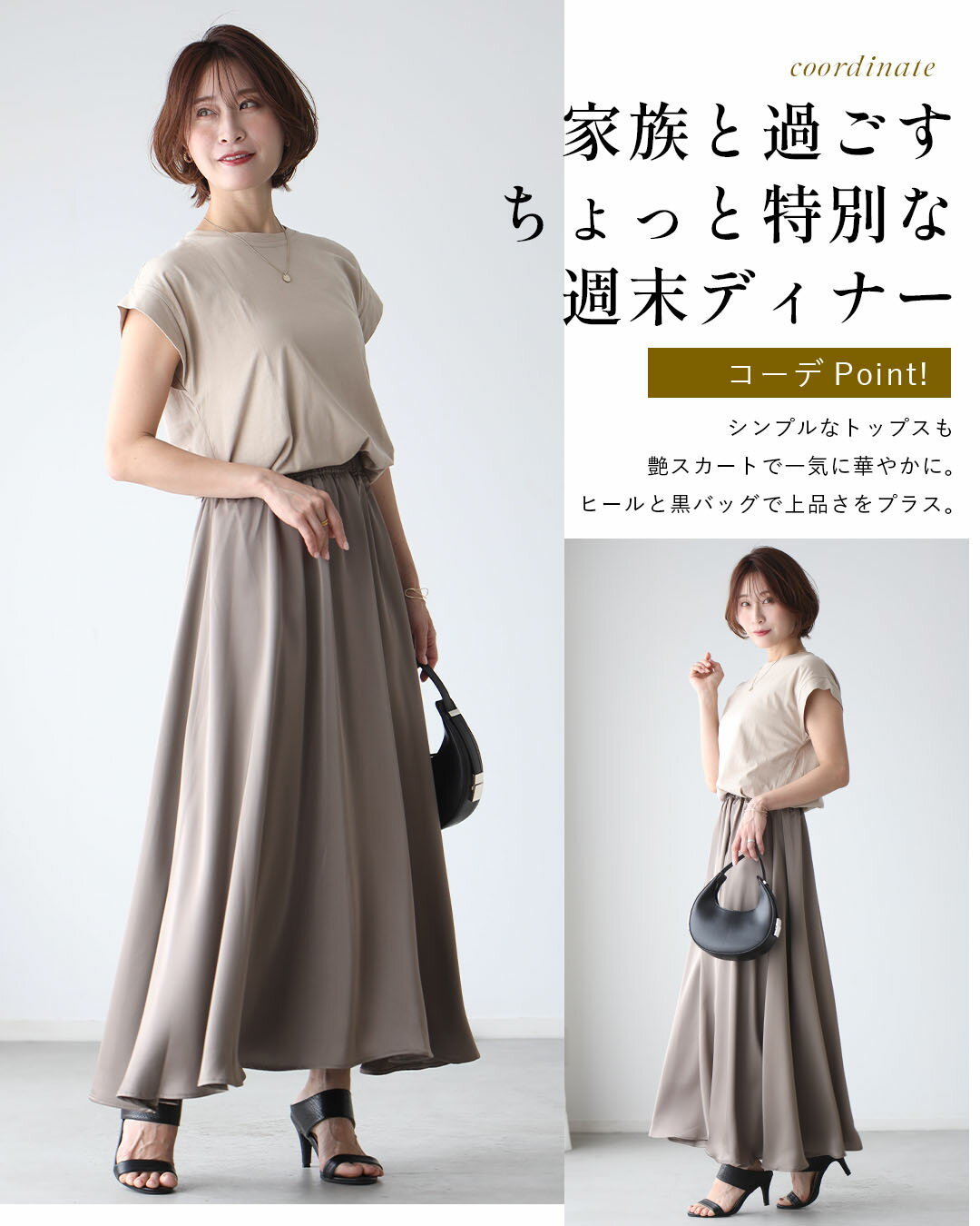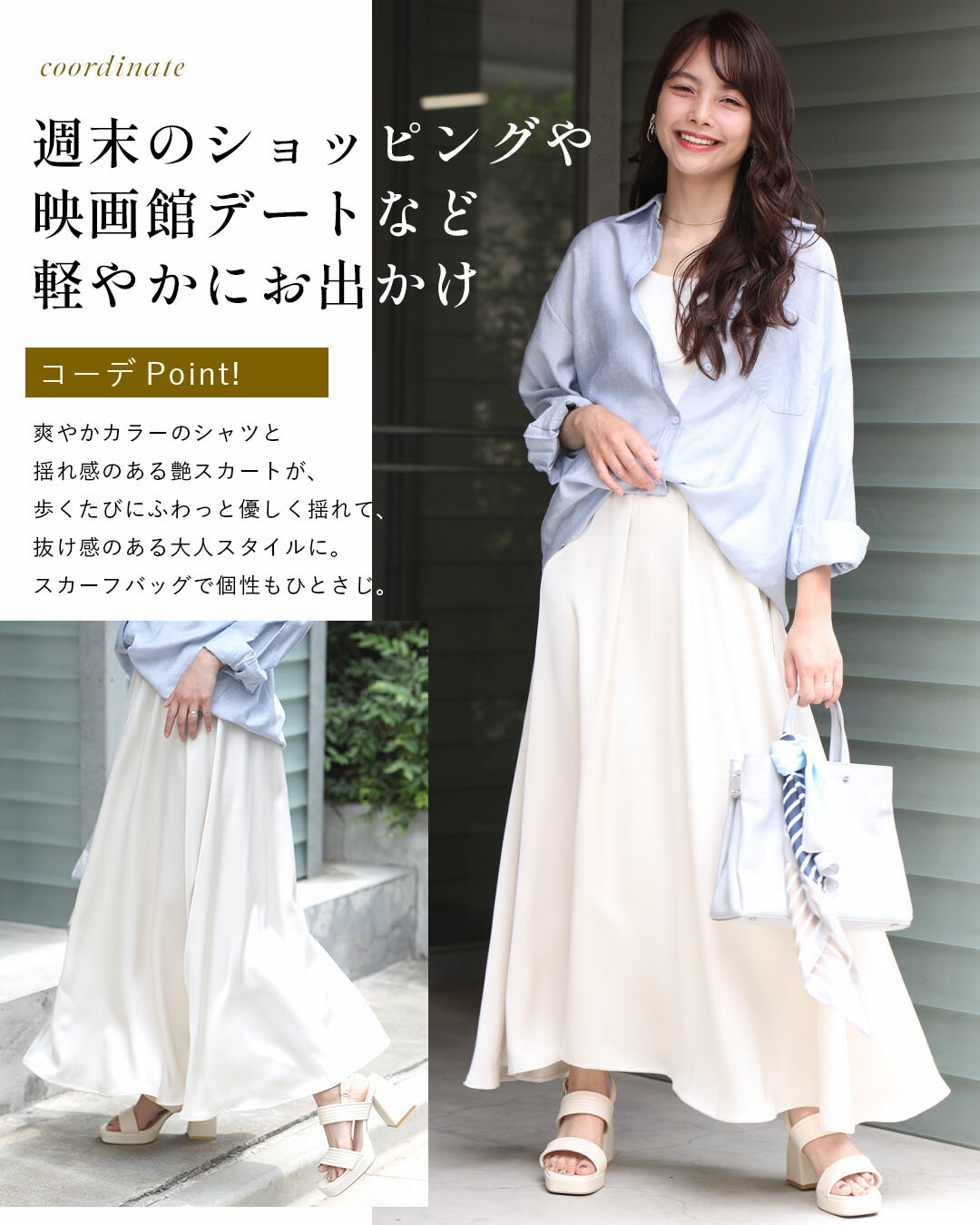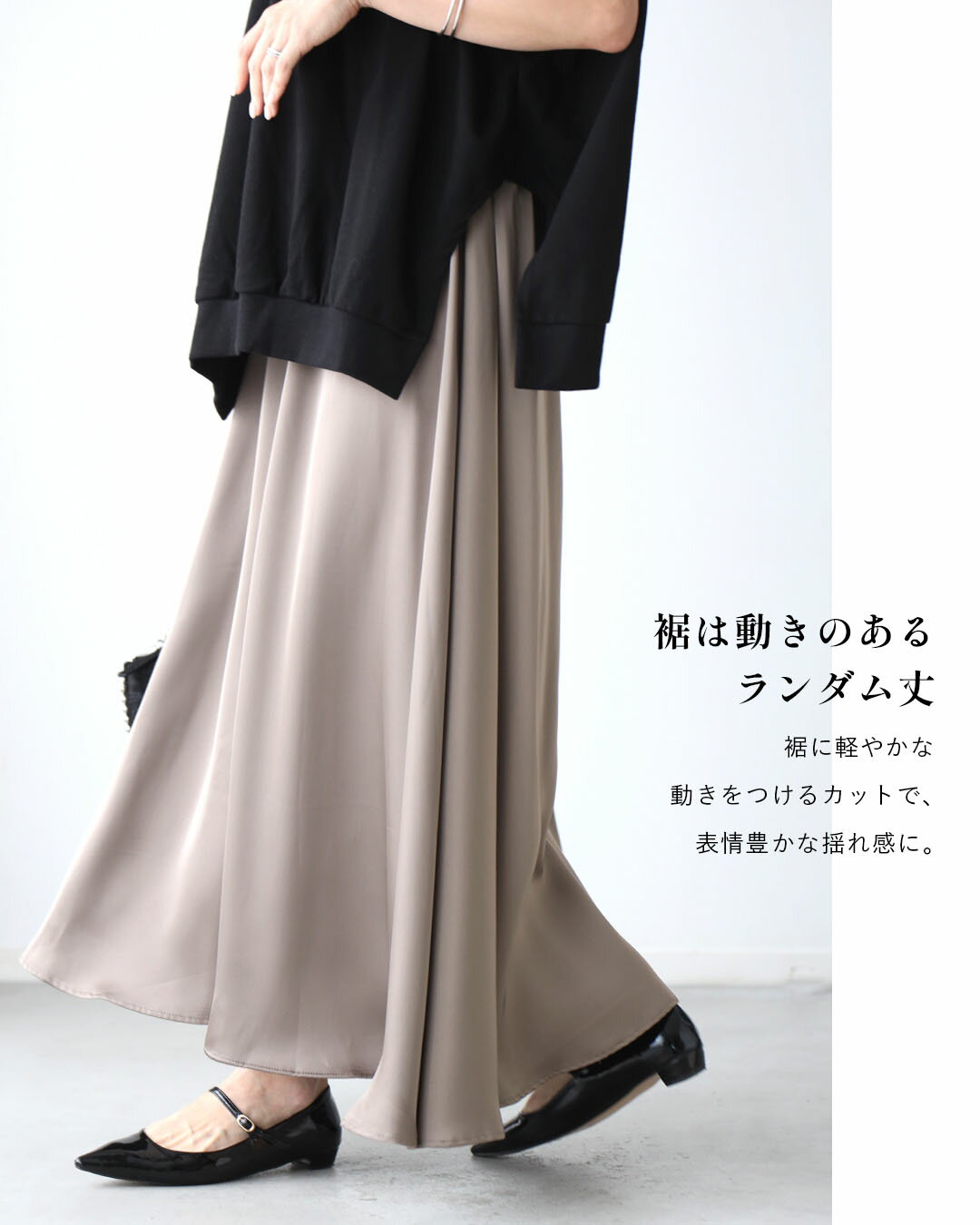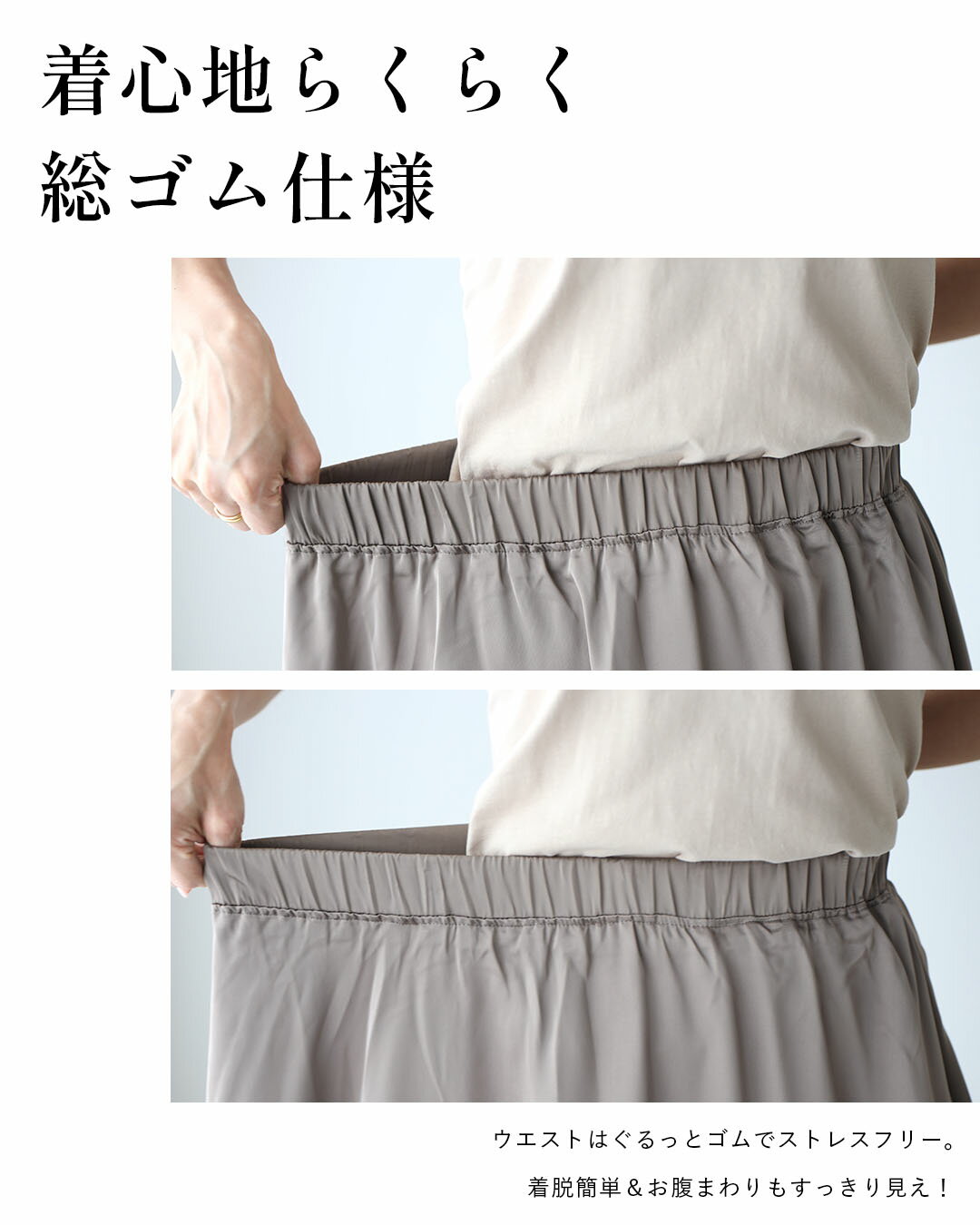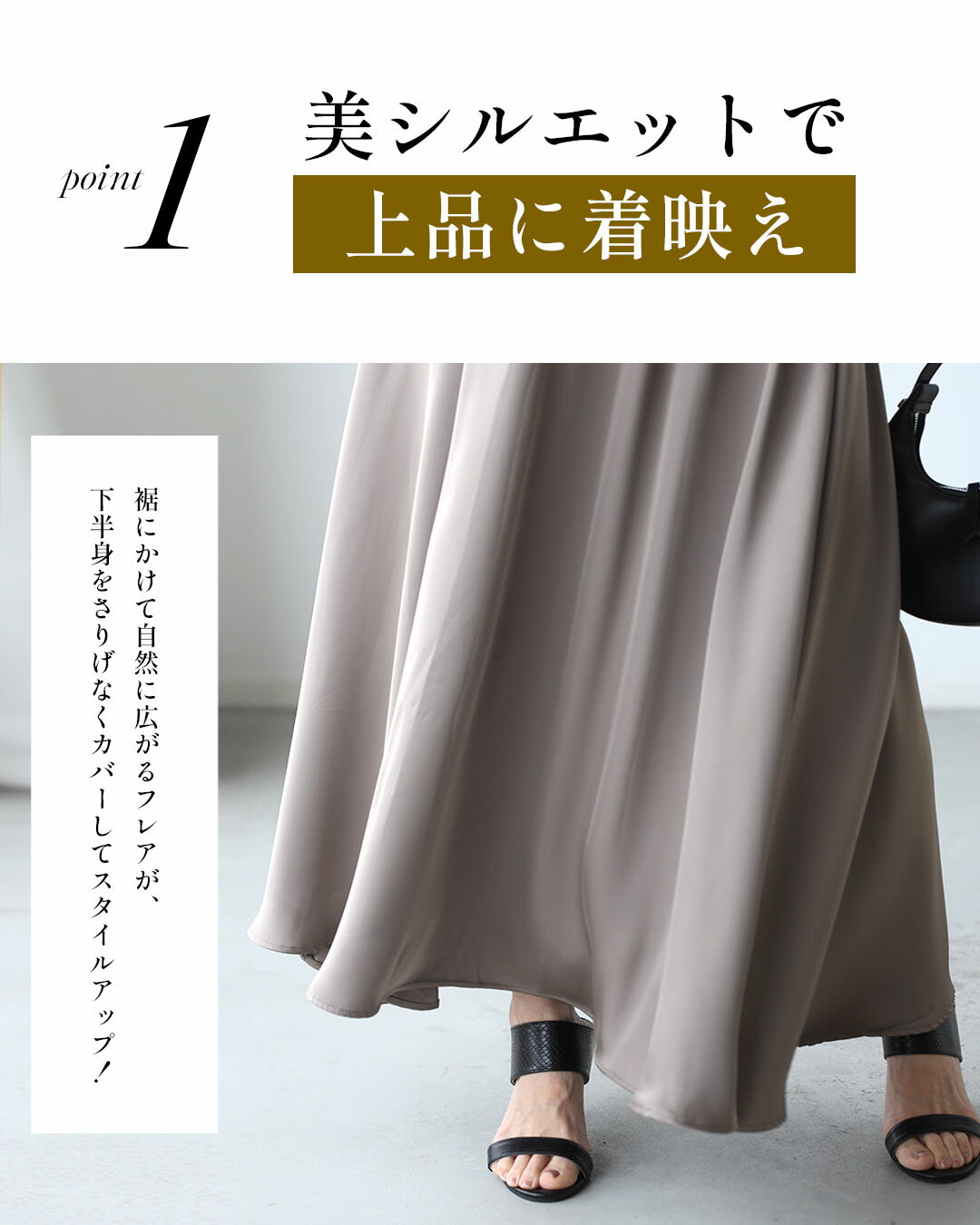 艶スカート フレアロングスカート スカート フレアスカート ロングスカート とろみ 落ち感 光沢 きれいめ 総ゴム ブラウン アイボリー ベージュ brown ivory beige 茶 白 オールシーズン フリーサイズ レディース ファッションEhre style スタイル エーレスタイル【F250615】