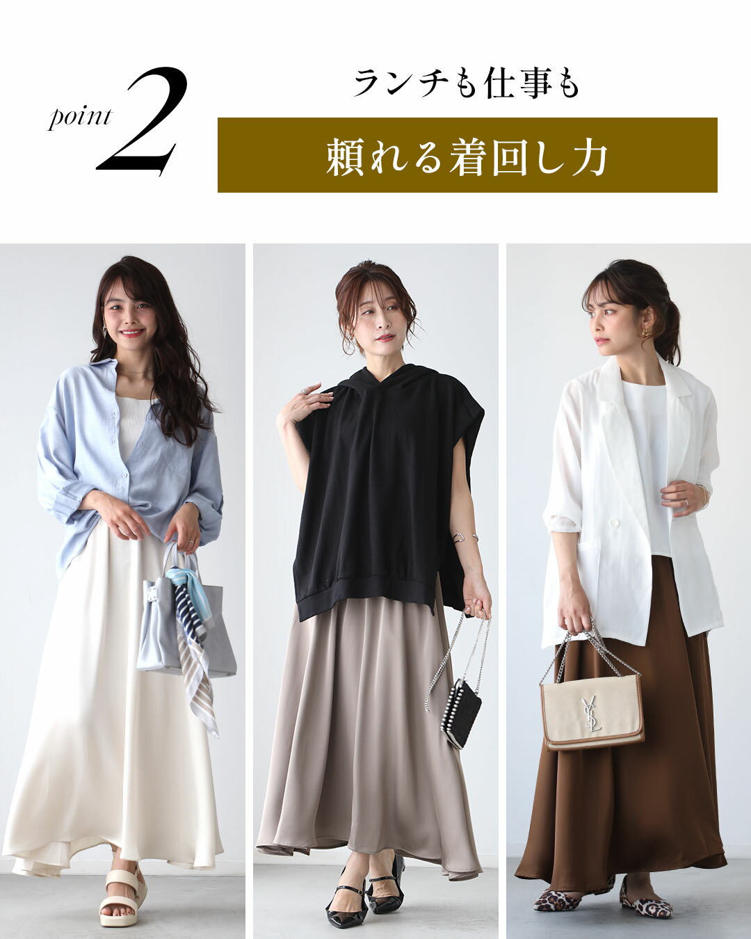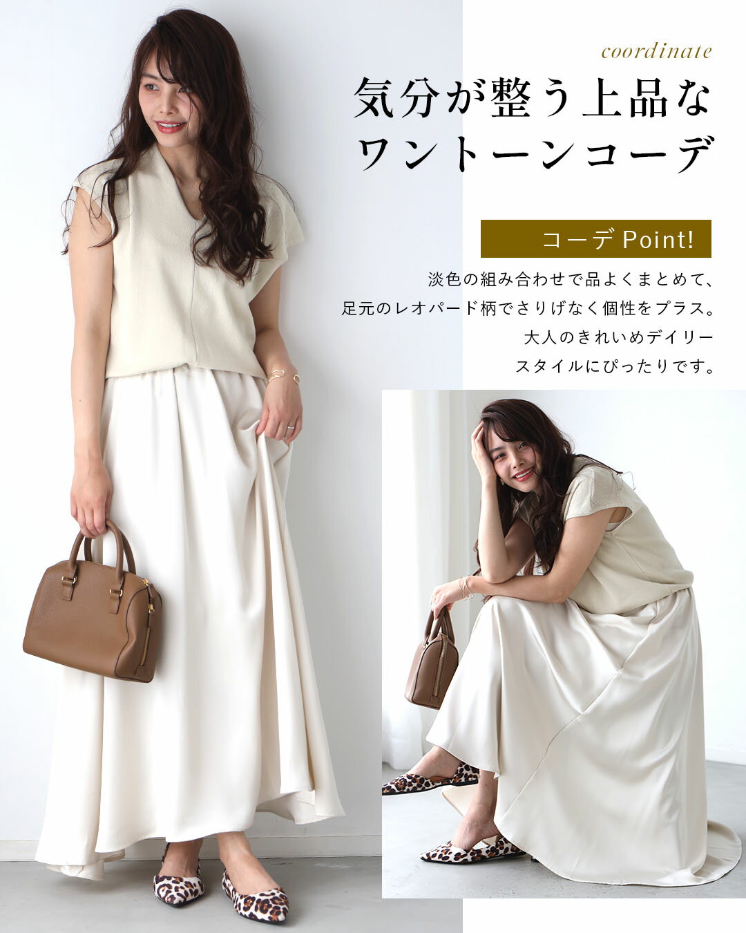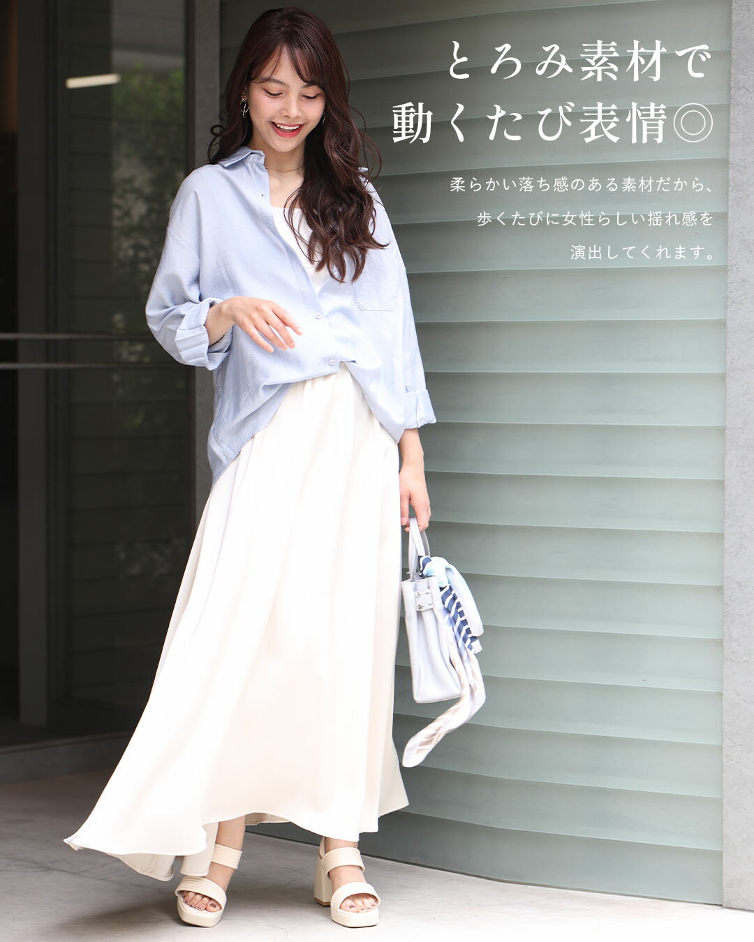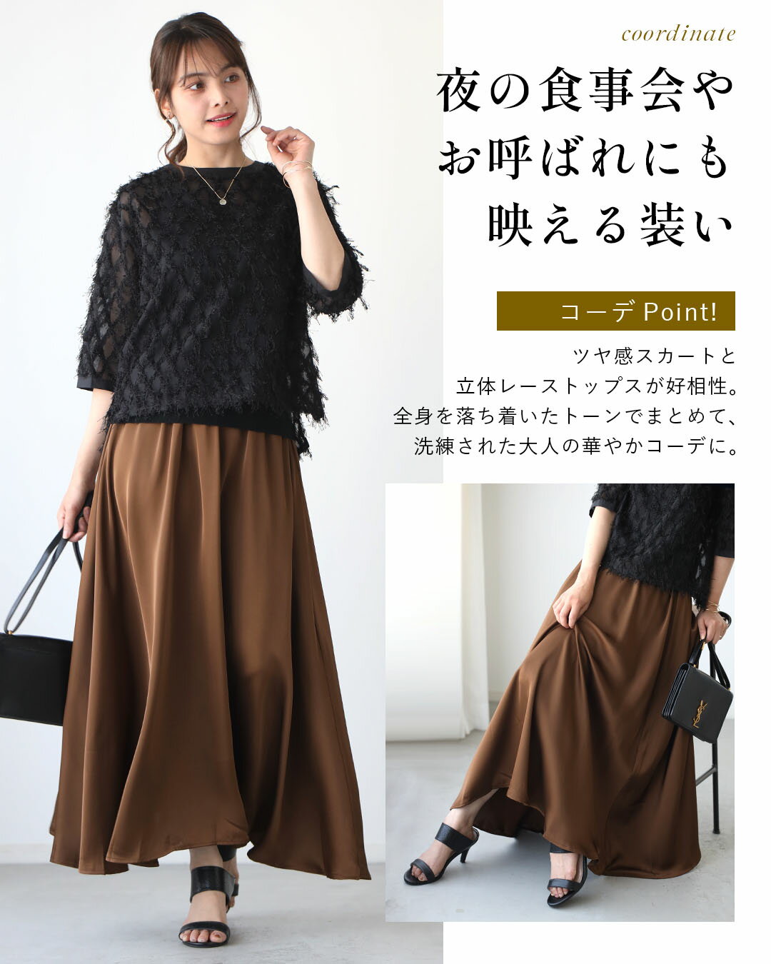 艶スカート フレアロングスカート スカート フレアスカート ロングスカート とろみ 落ち感 光沢 きれいめ 総ゴム ブラウン アイボリー ベージュ brown ivory beige 茶 白 オールシーズン フリーサイズ レディース ファッションEhre style スタイル エーレスタイル【F250615】