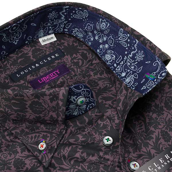 リバティ タナローン 国産 長袖 綿100% ドレスシャツ プリント コンフォート ボタンダウン 花柄シルエット 2505ft