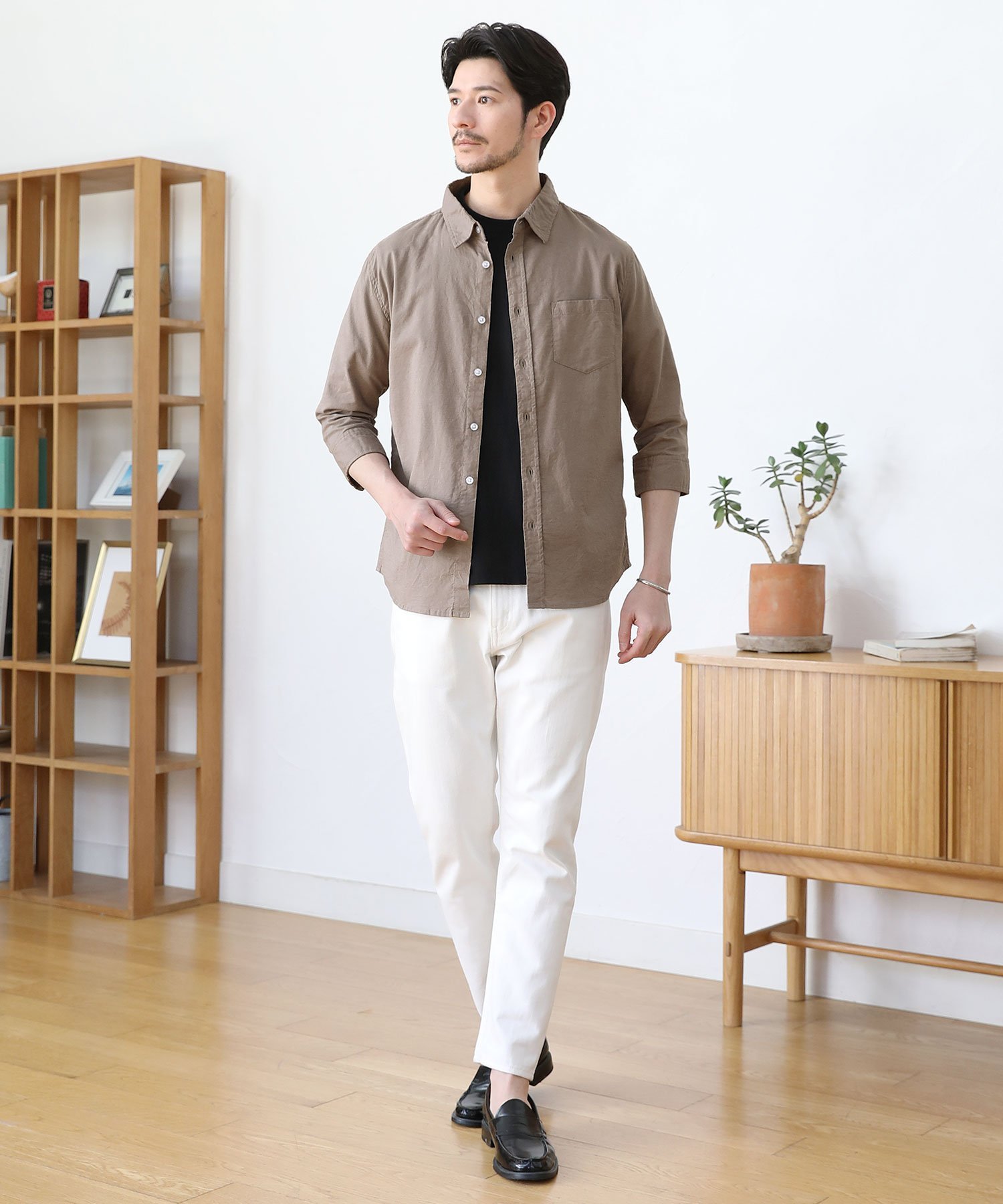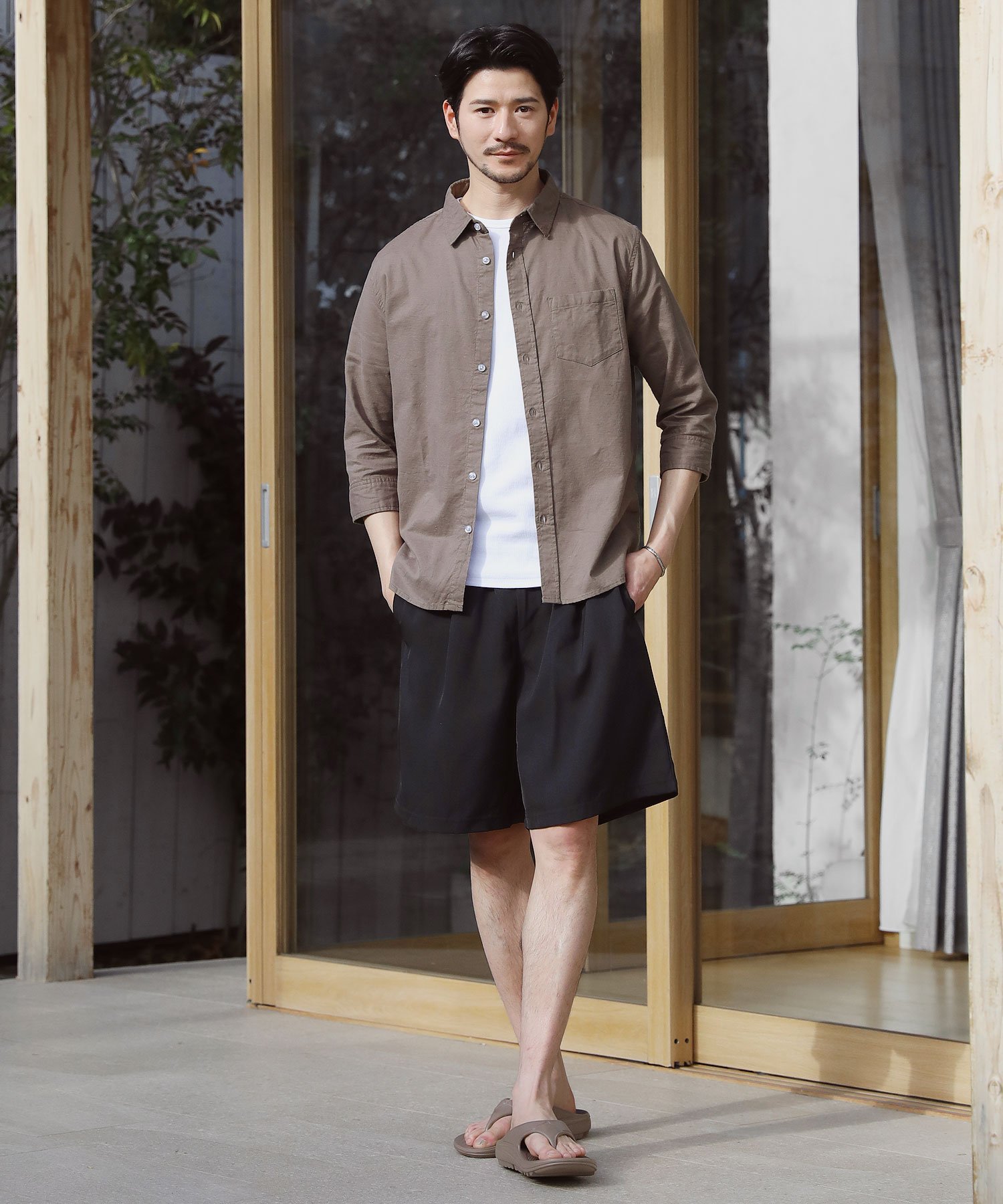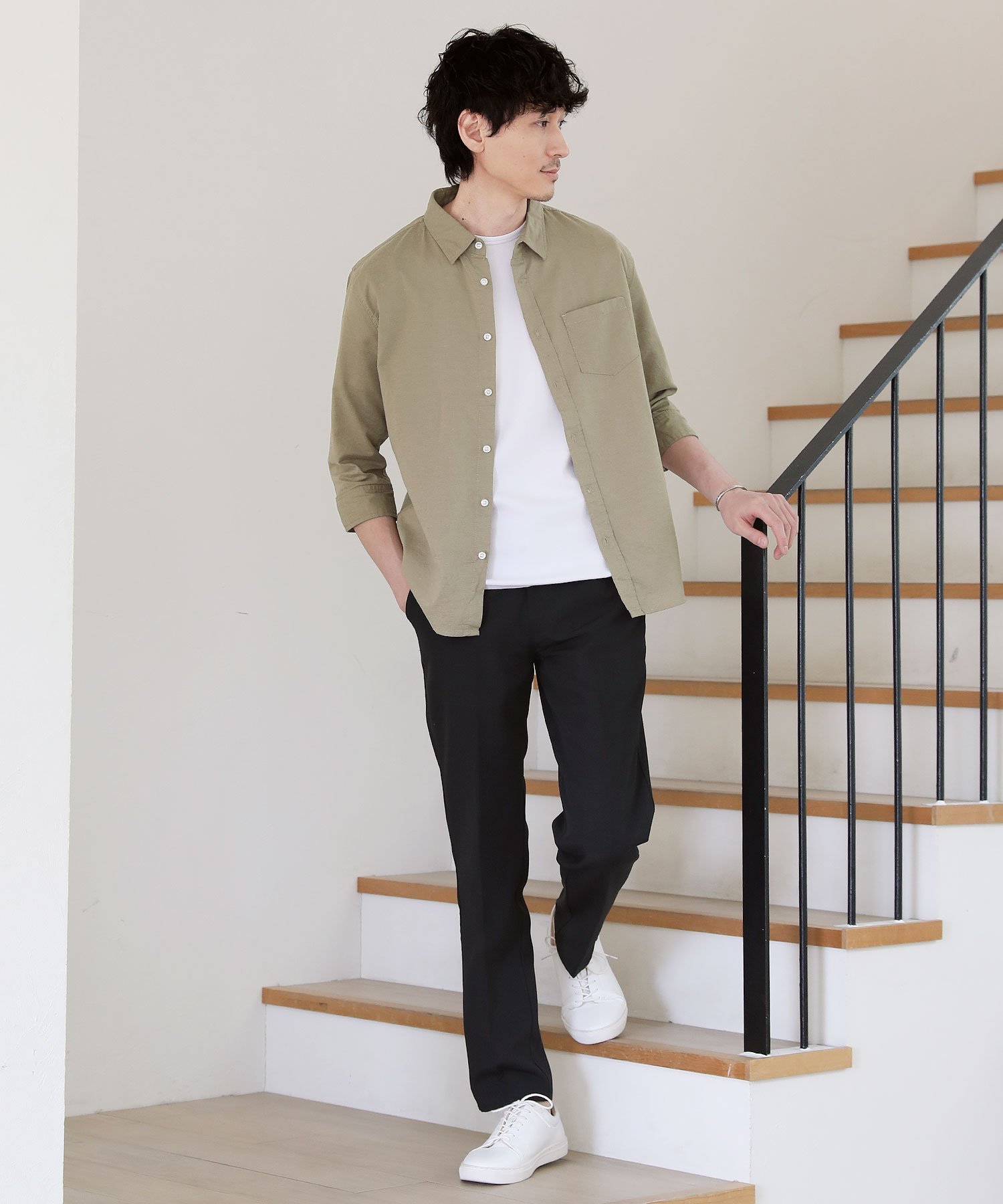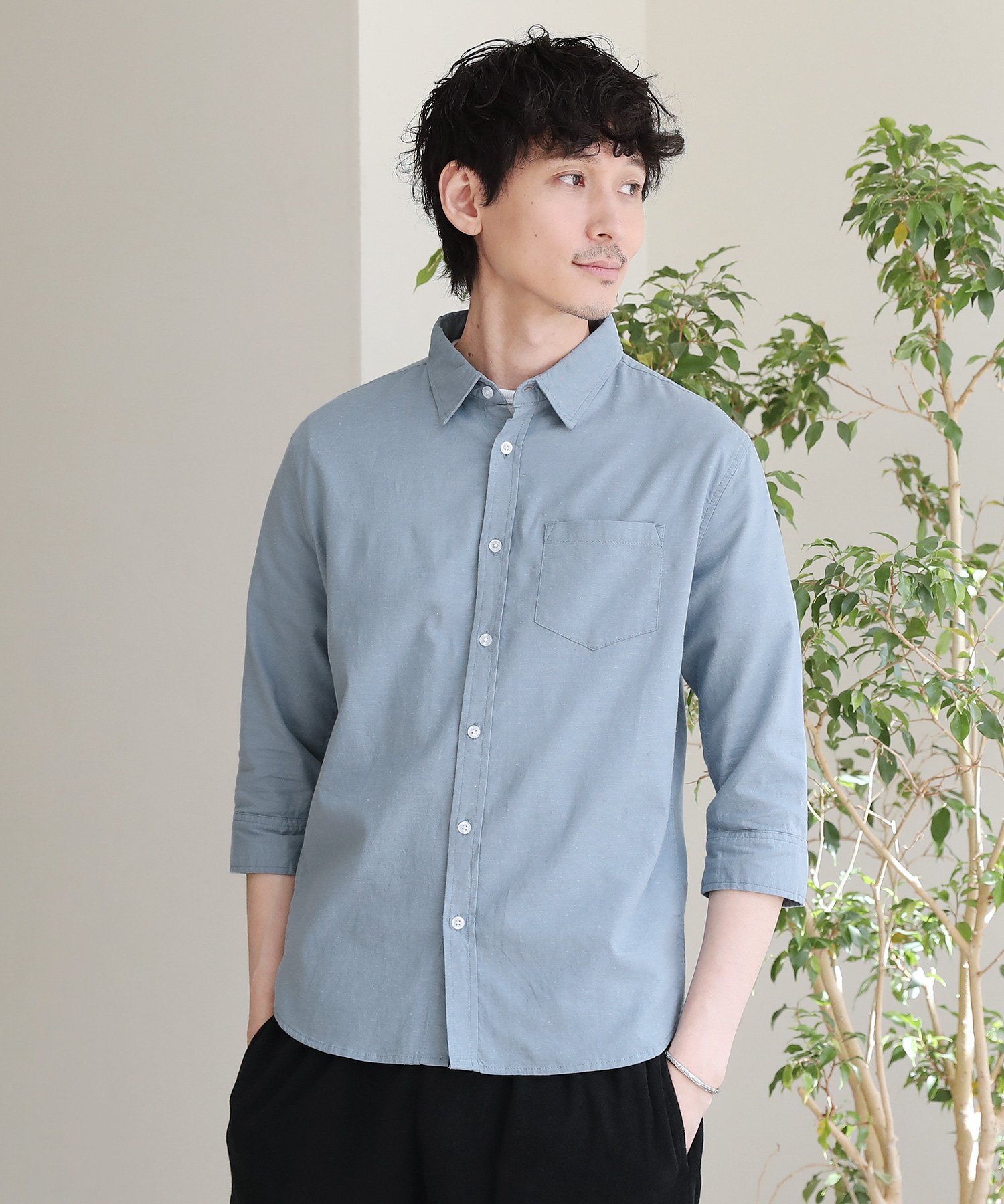 【SALE/12%OFF】SPU 綿麻レギュラーカラー7分袖シャツ カジュアル トップス シャツ・ブラウス グレー ブラウン カーキ ブルー ネイビー グリーン ホワイト