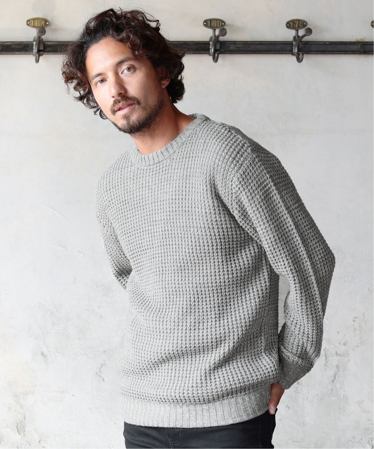 LIL VENDARS ピリング(毛玉)防止加工 ワッフル編み クルーネック アクリル ニット セーター カジュアル トップス ニット グレー ブラック ブルー ホワイト ベージュ カーキ ネイビー ピンク ブラウン グリーン