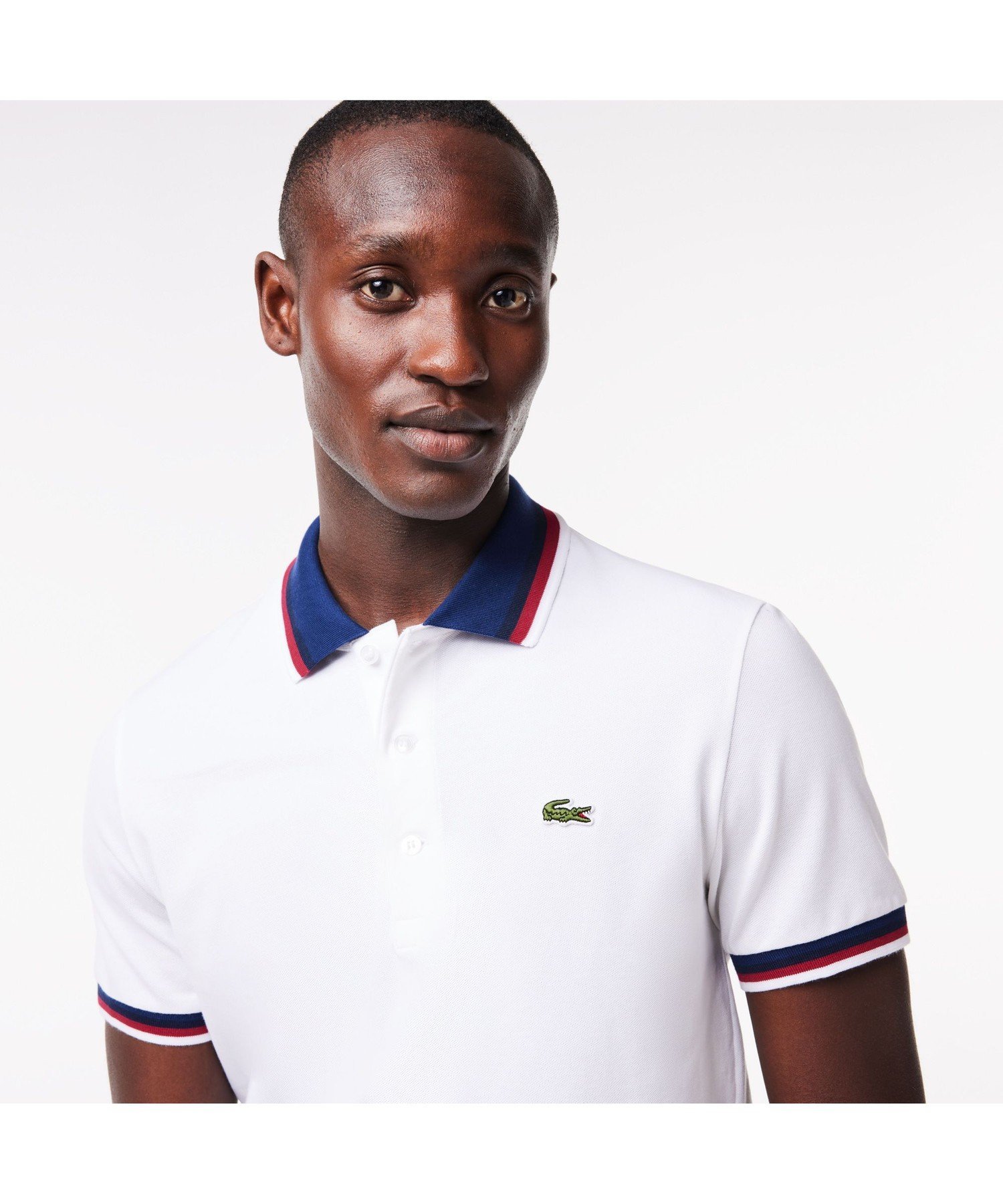 【SALE/30%OFF】LACOSTE 配色ボーダーリブニット鹿の子地ポロシャツ ラコステ トップス ポロシャツ ブラック ホワイト レッド グリーン【送料無料】
