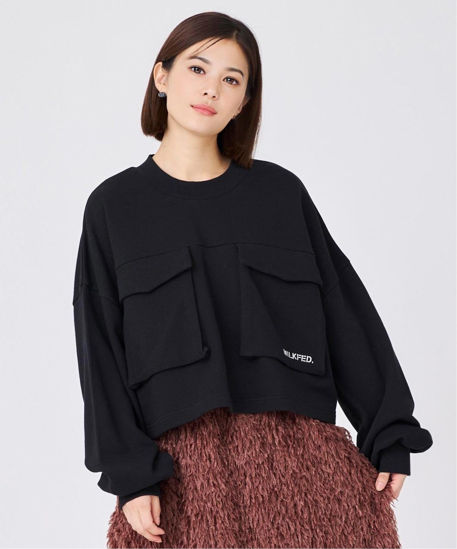 【SALE/50%OFF】MILKFED. DOUBLE POCKET SWEAT TOP ミルクフェド トップス スウェット・トレーナー ブラック ホワイト ピンク【送料無料】