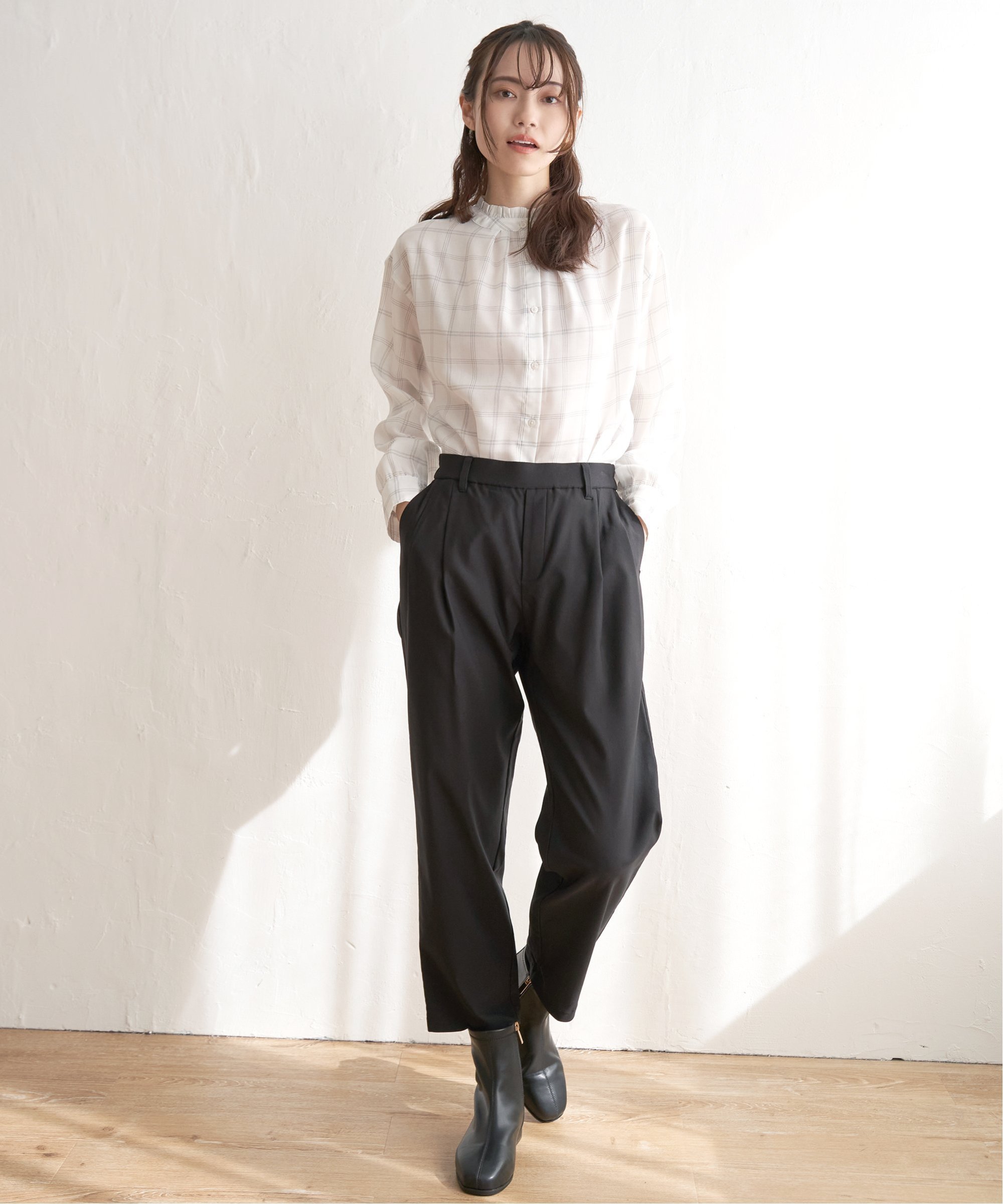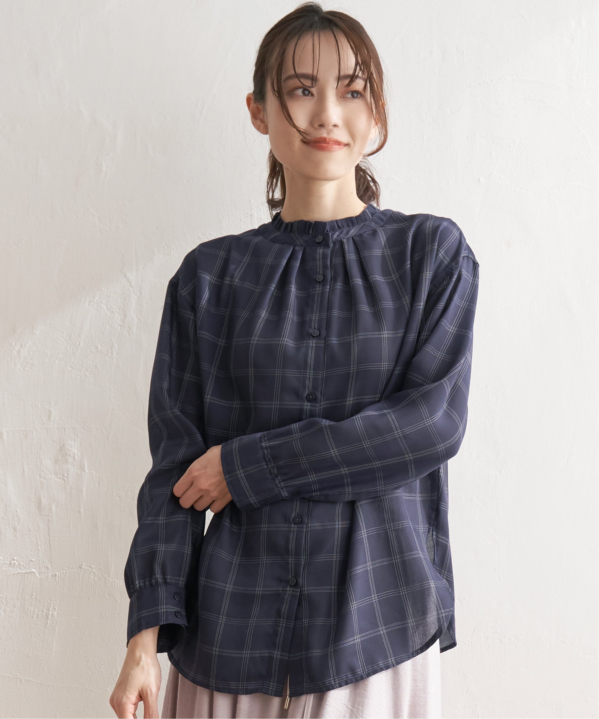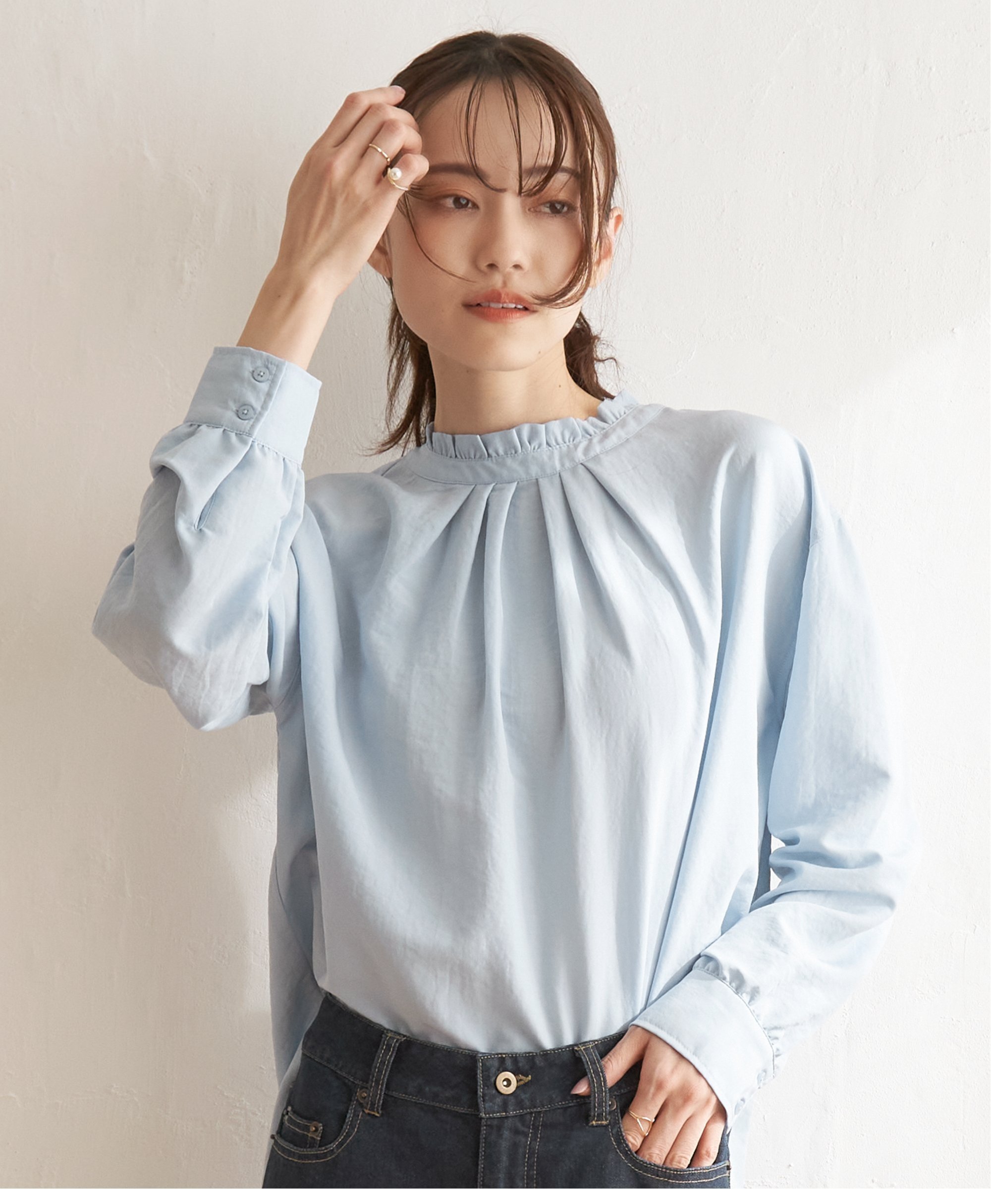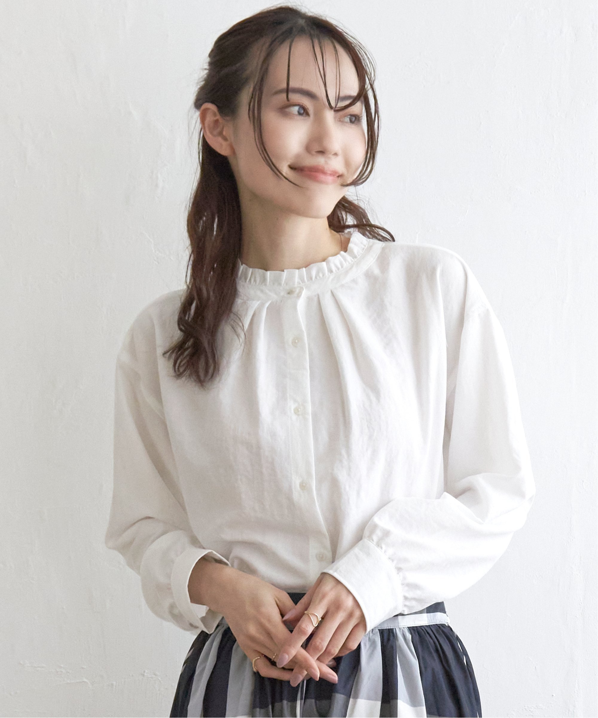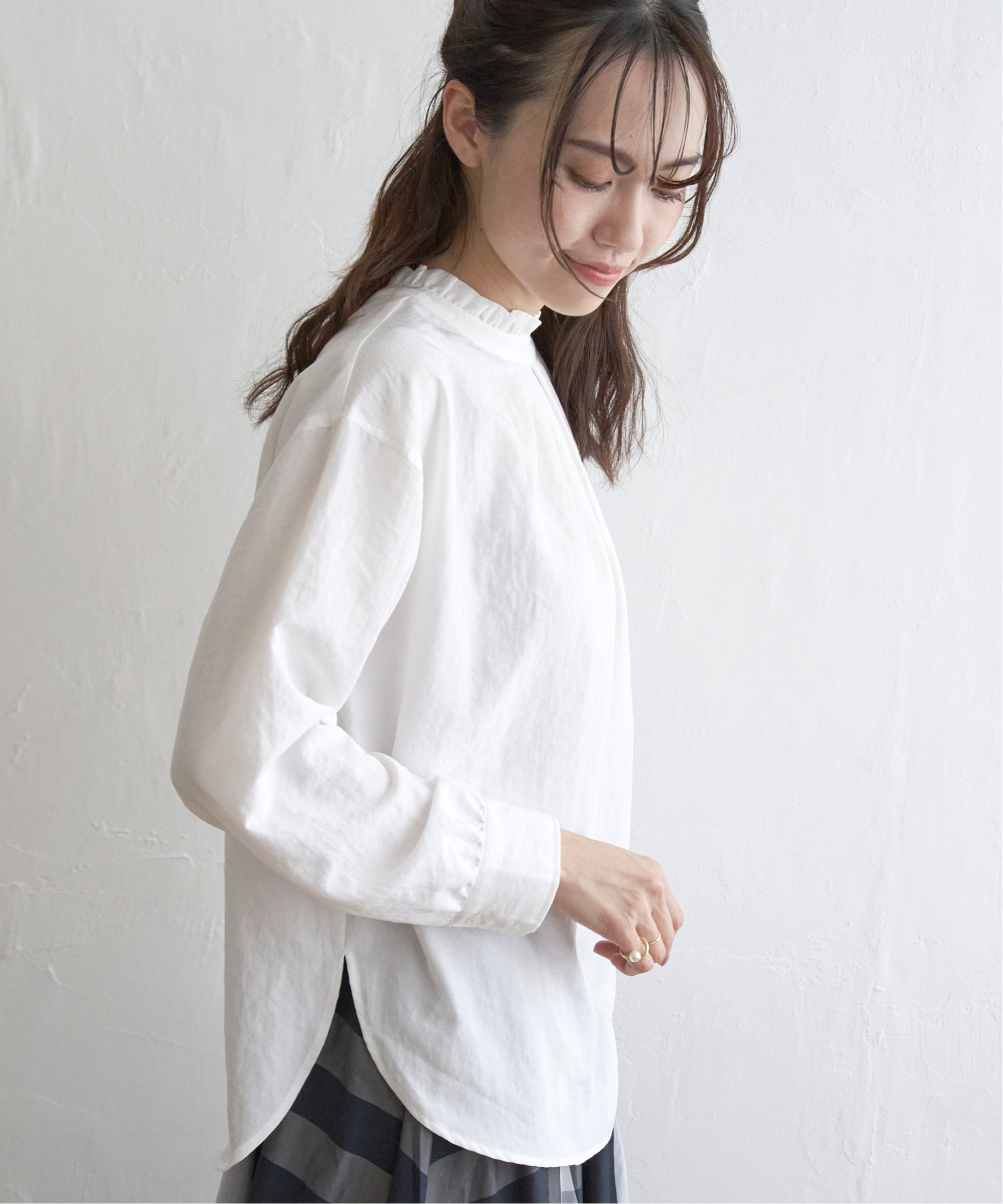 ikka 【雑誌InRed4月号掲載】襟フリル2WAYブラウス イッカ トップス その他のトップス ホワイト ブルー ネイビー ピンク