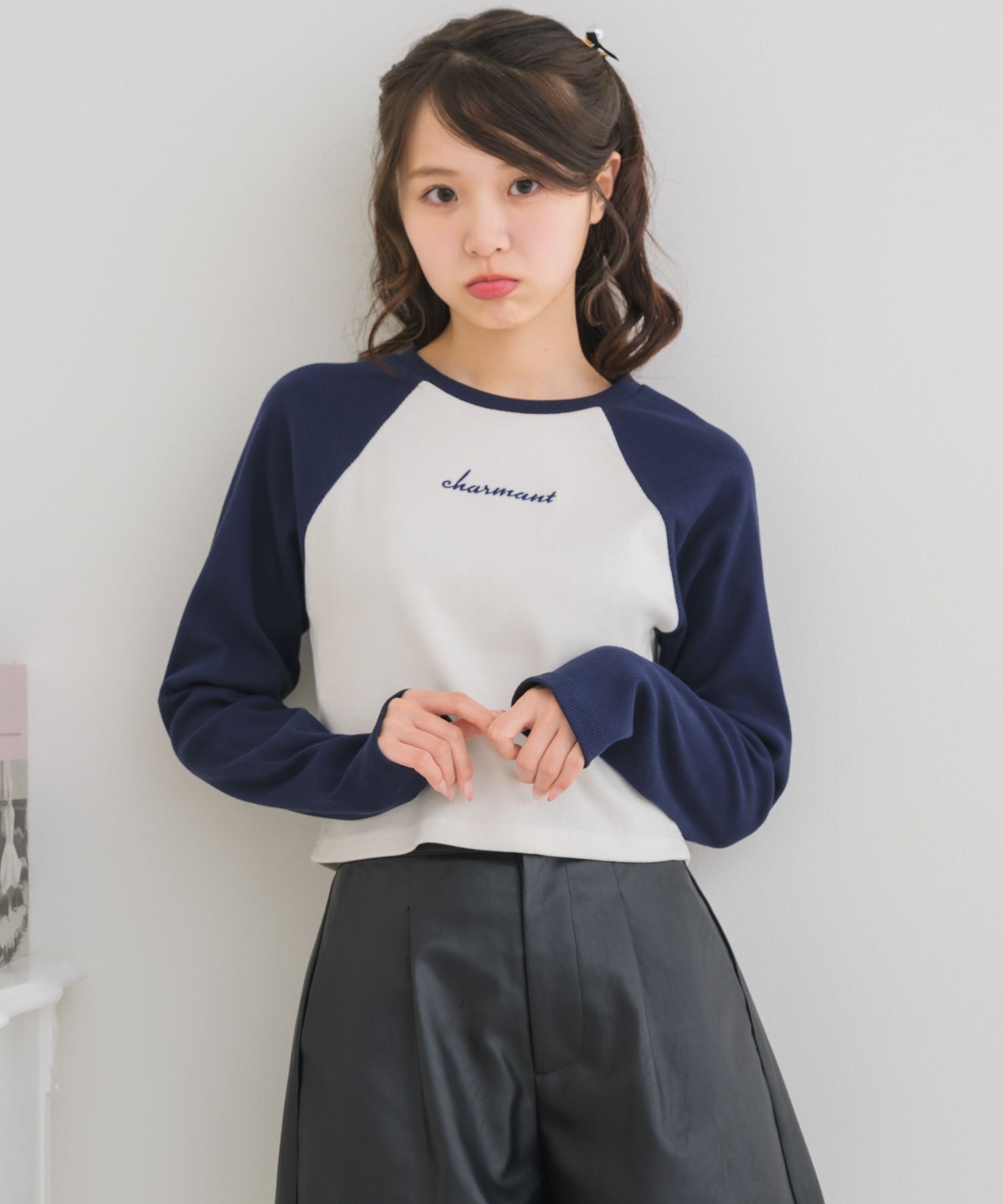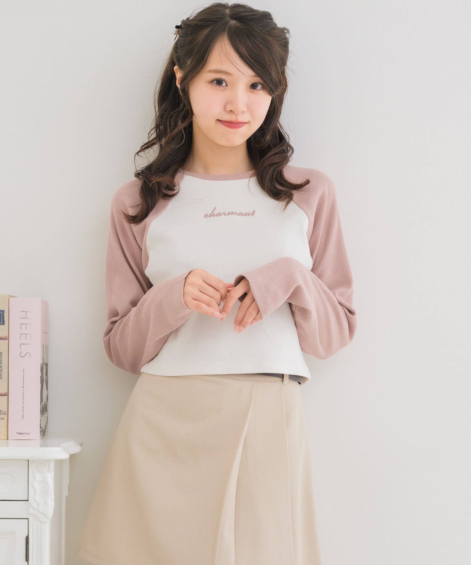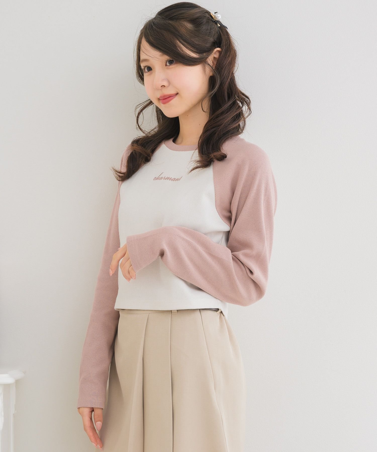 【SALE/37%OFF】ems excite ラグランショートTEE レトロガール トップス その他のトップス グレー ホワイト ピンク