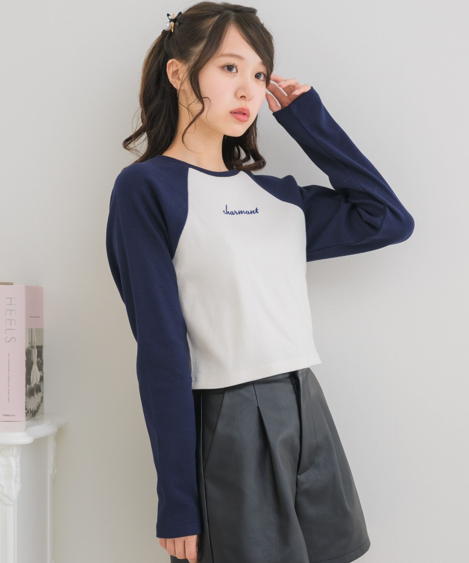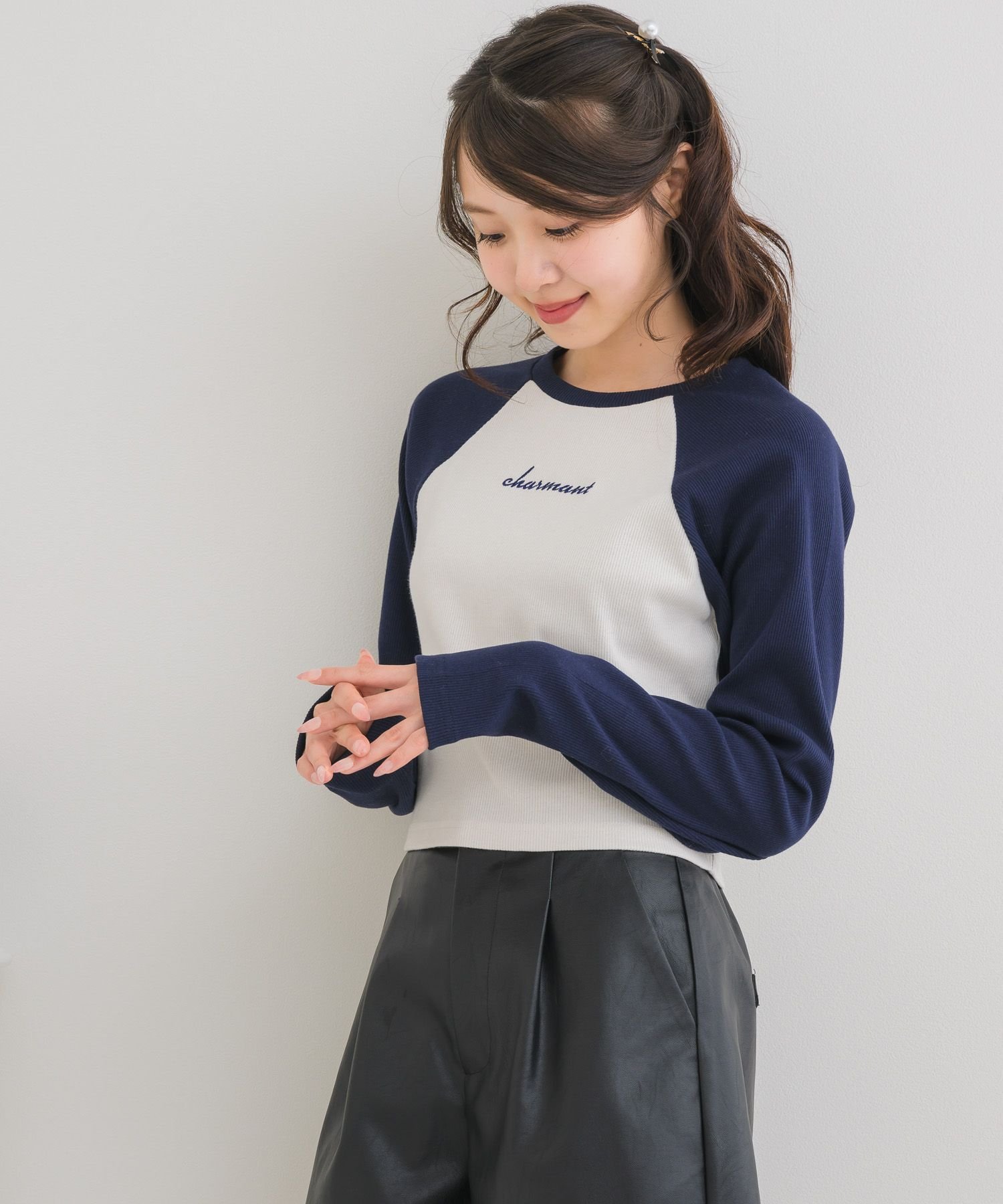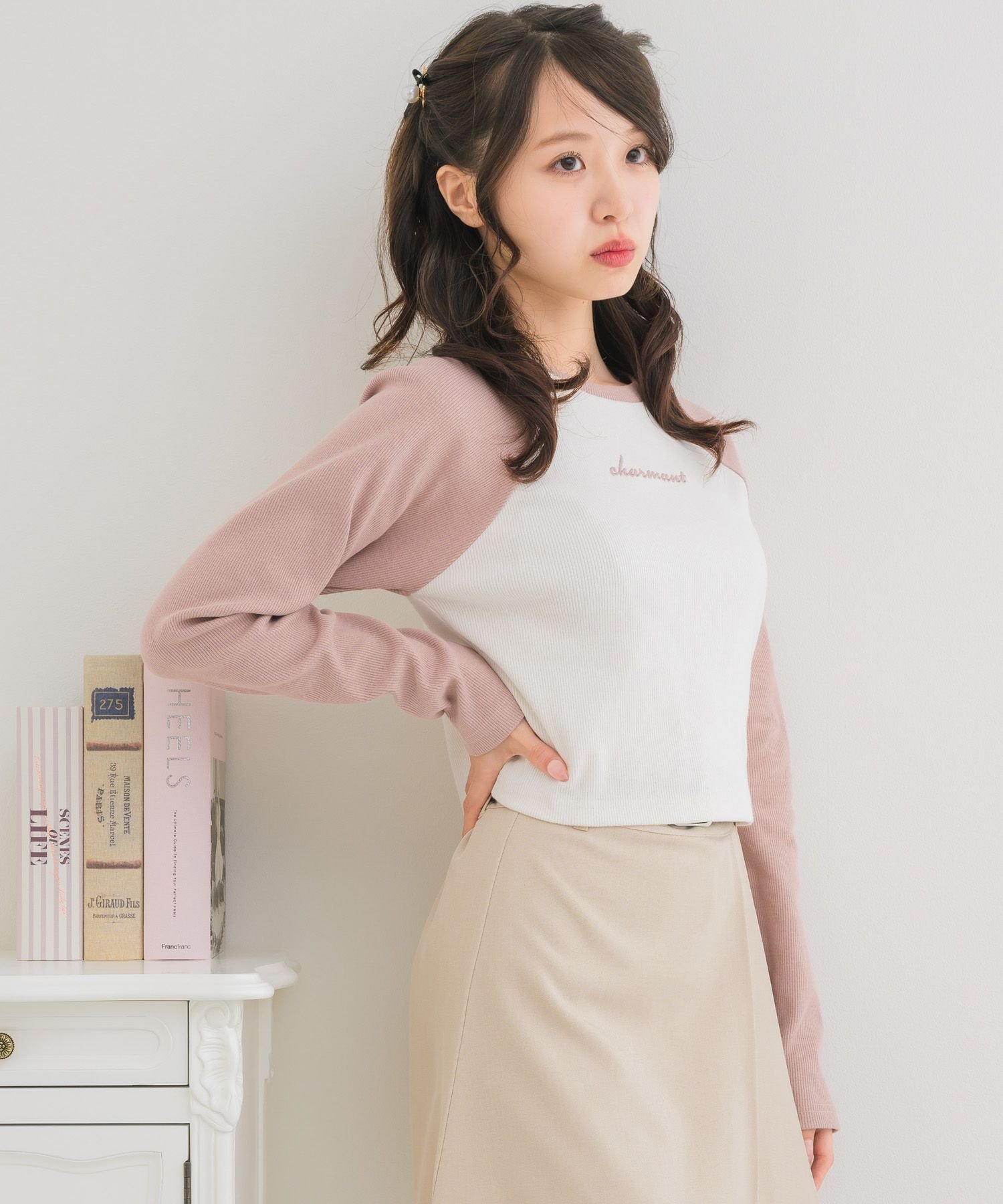 【SALE/37%OFF】ems excite ラグランショートTEE レトロガール トップス その他のトップス グレー ホワイト ピンク