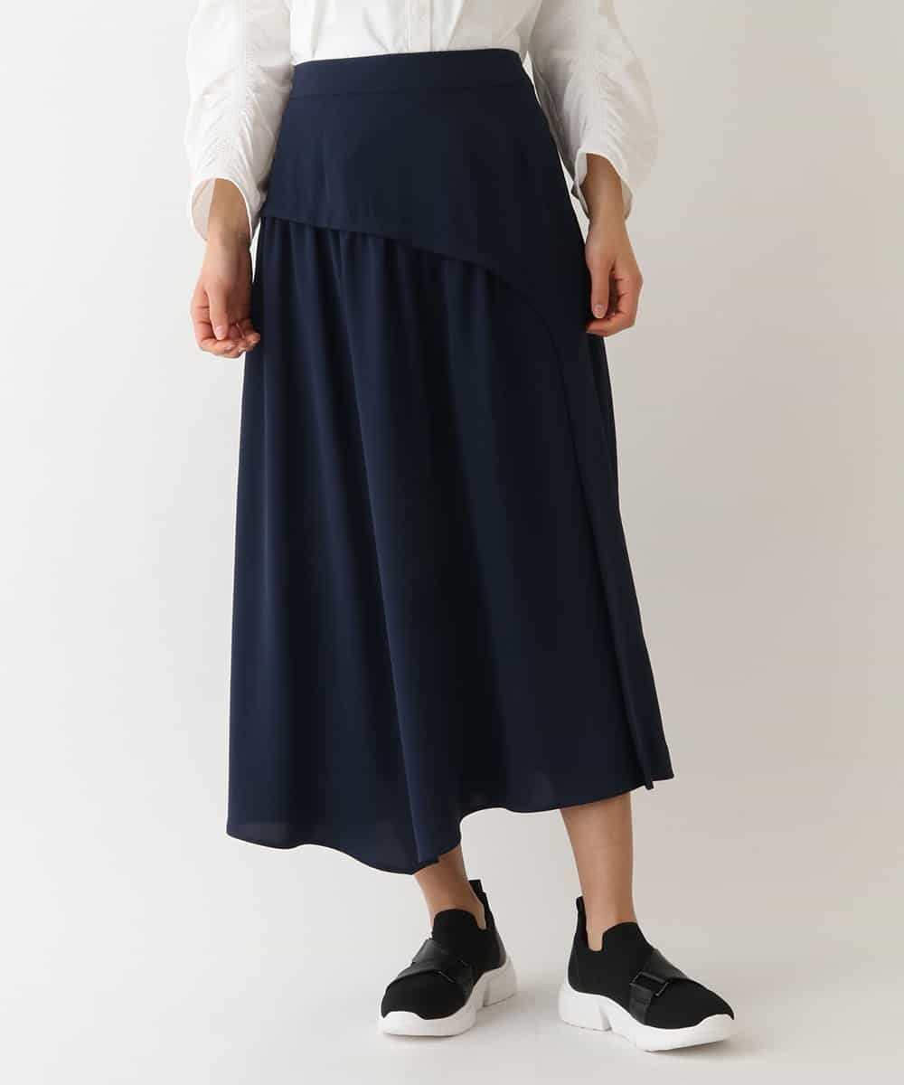 【SALE/50%OFF】HIROKO BIS GRANDE 【大きいサイズ】アシンメトリー切り替えサテンスカート /洗濯機で洗える ヒロコ ビス グランデ スカート その他のスカート ネイビー ベージュ【送料無料】