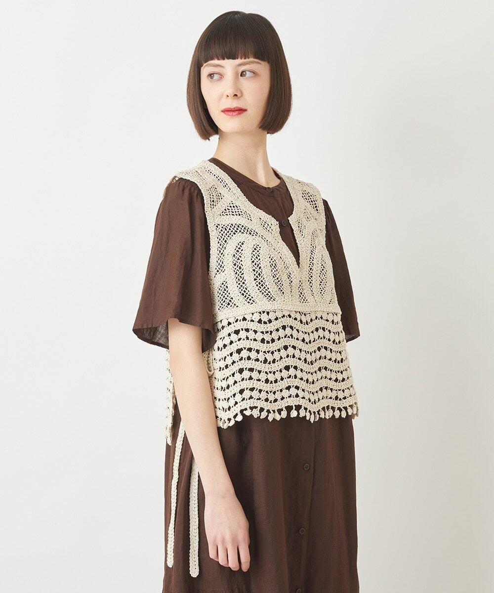 HIROKO BIS ケミカルレースジレ /洗える ヒロコ ビス トップス ベスト・ジレ ホワイト ブラック【送料無料】