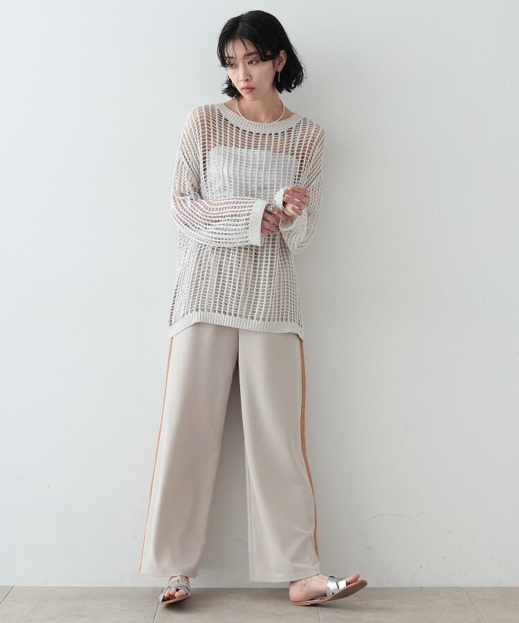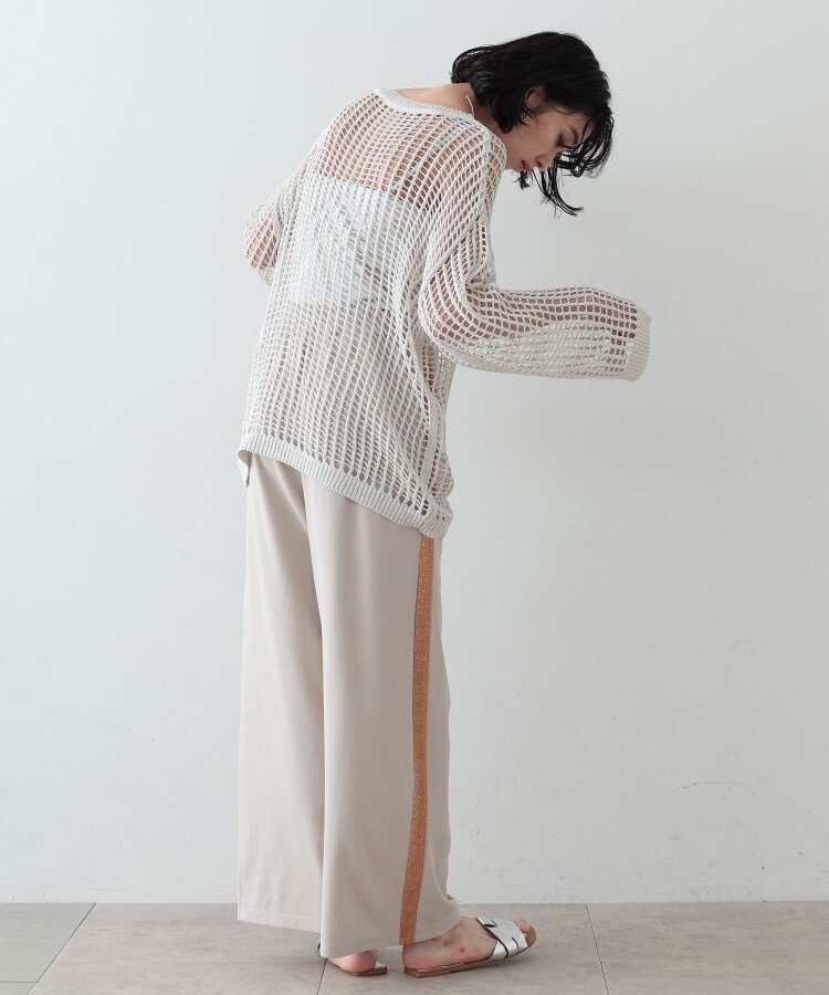 【SALE/50%OFF】GALLEST ハシゴメッシュニット インディヴィ トップス ニット ホワイト ブラック ベージュ