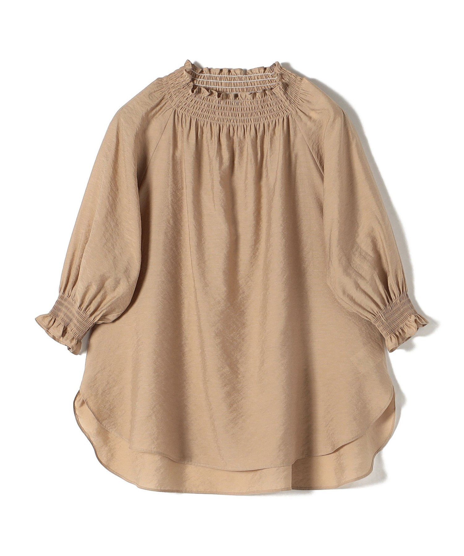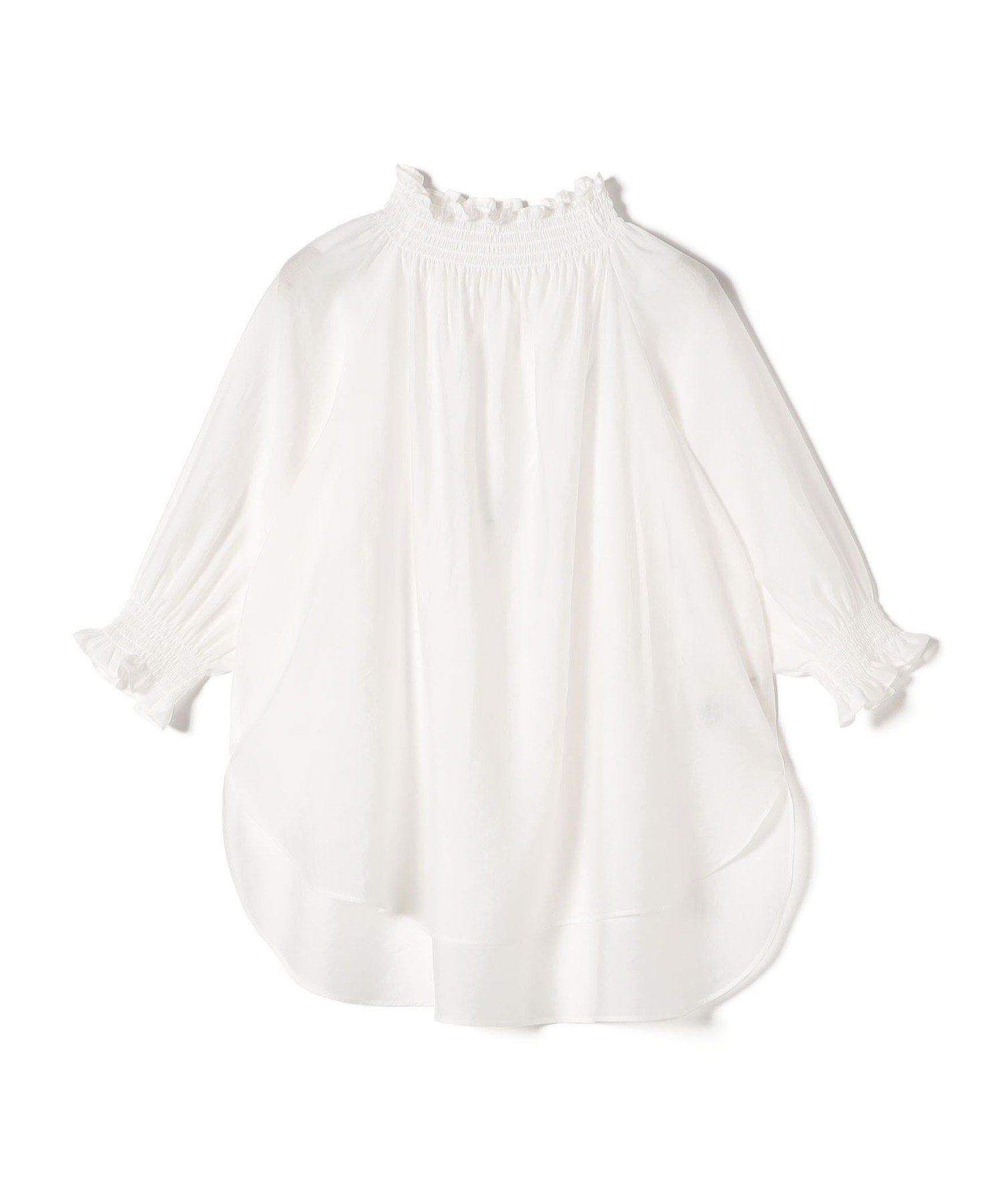 SHIPS WOMEN <洗濯機可能>シアー シャーリング ネック ショート スリーブ ブラウス シップス トップス シャツ・ブラウス ベージュ ホワイト ブラック【送料無料】