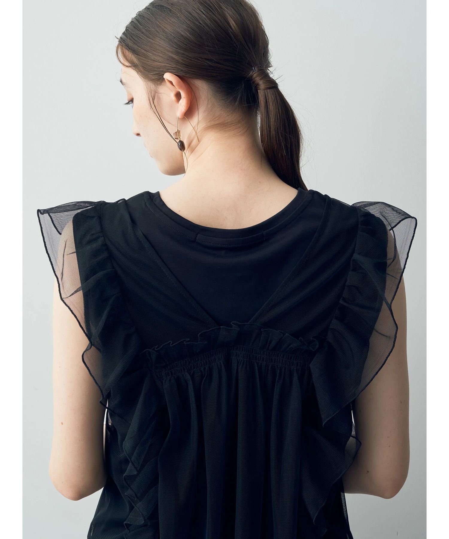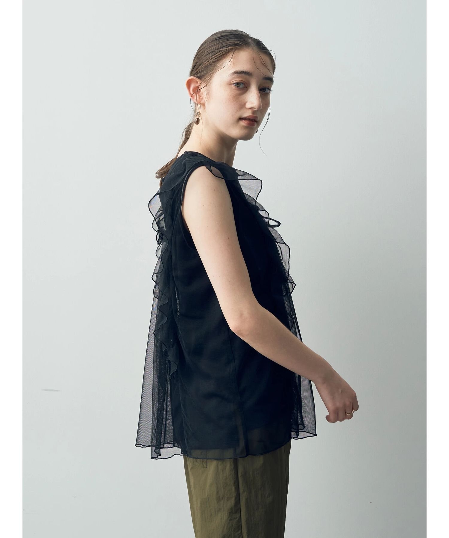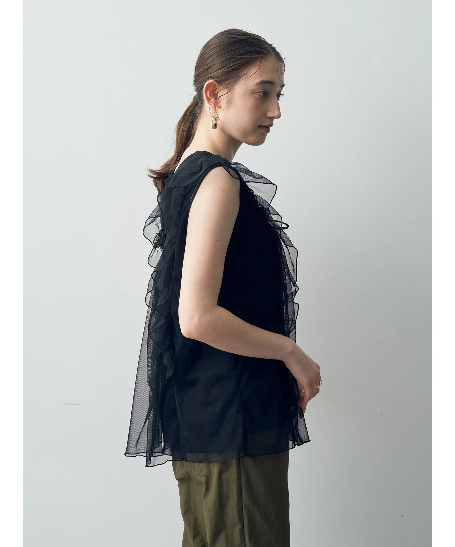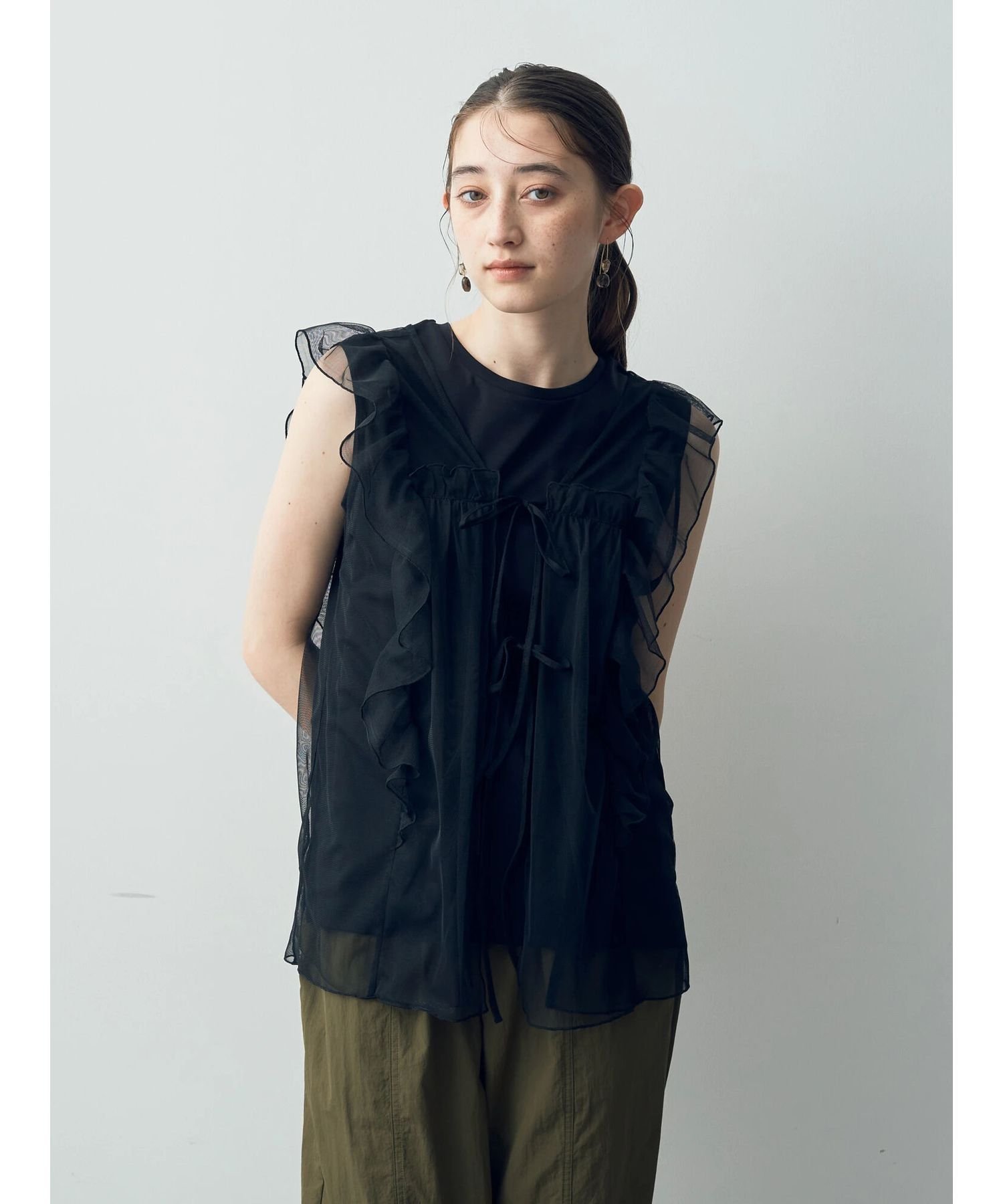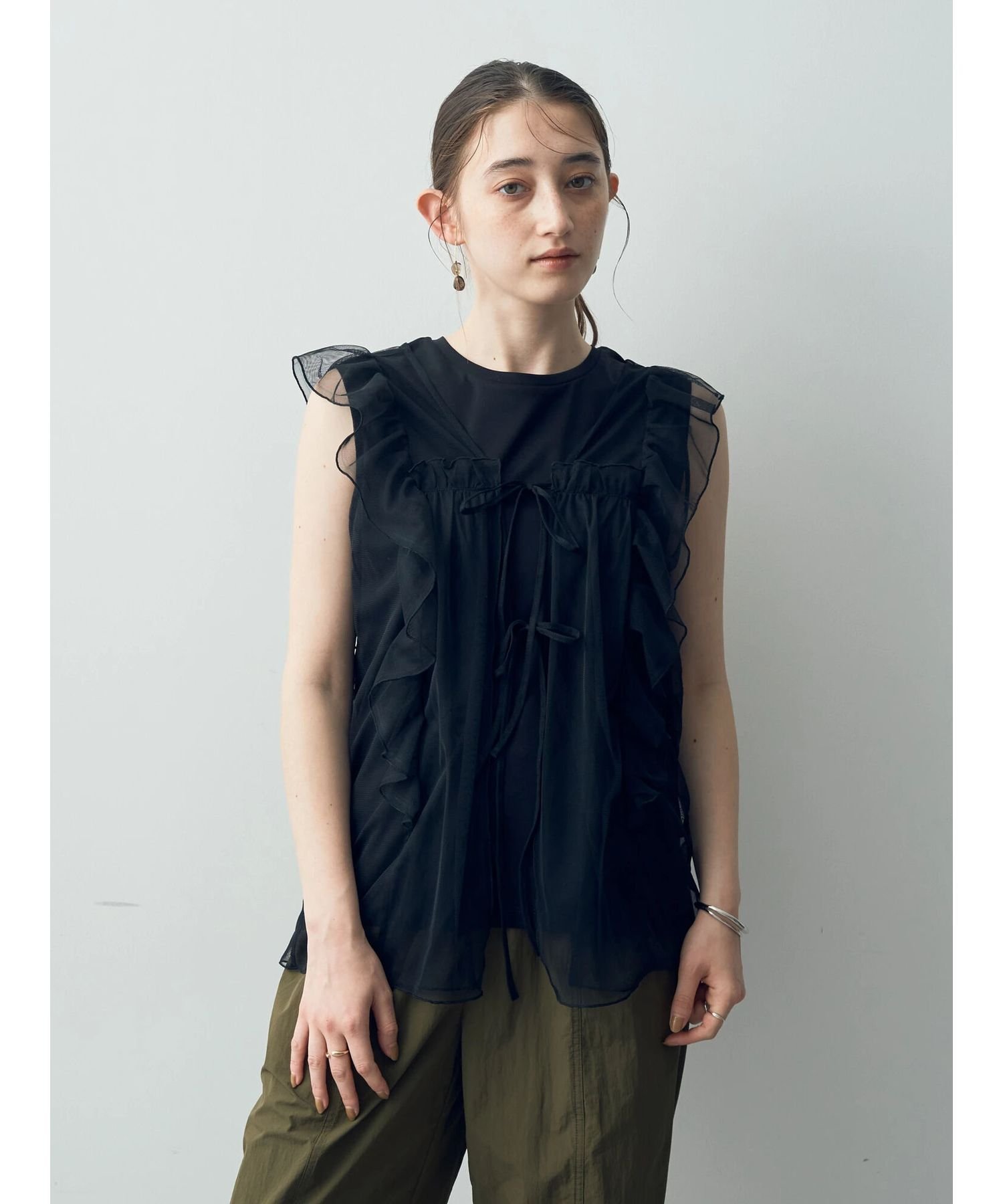 【SALE/50%OFF】YECCA VECCA 2wayチュールフリルジレ イェッカヴェッカ トップス ベスト・ジレ ホワイト ブラック