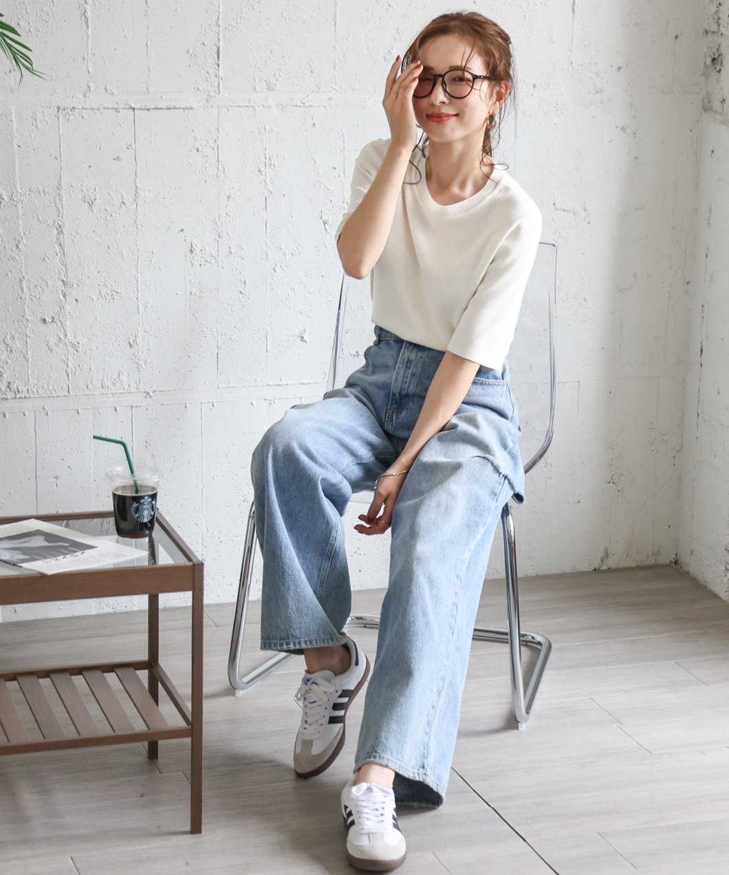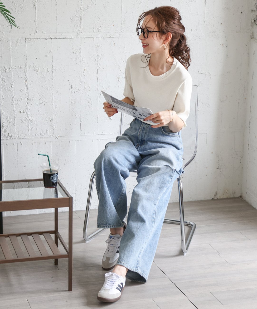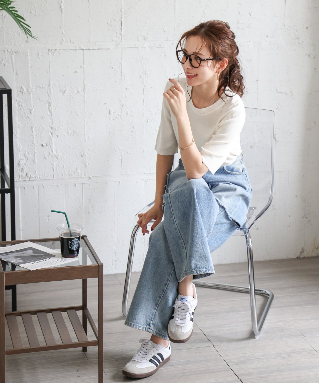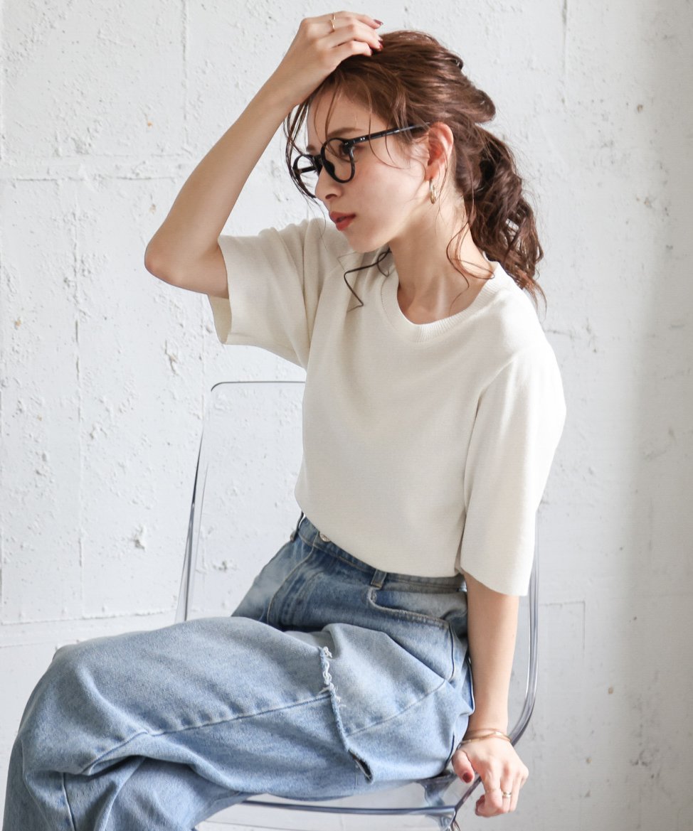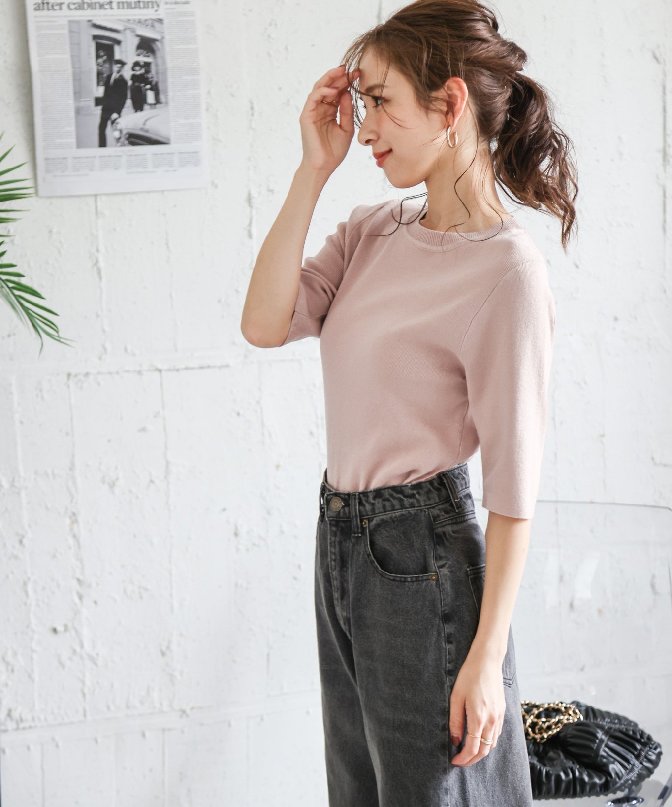 La-gemme 五分袖サマーニット ラジュール トップス ニット ホワイト ブラック ベージュ ピンク【送料無料】