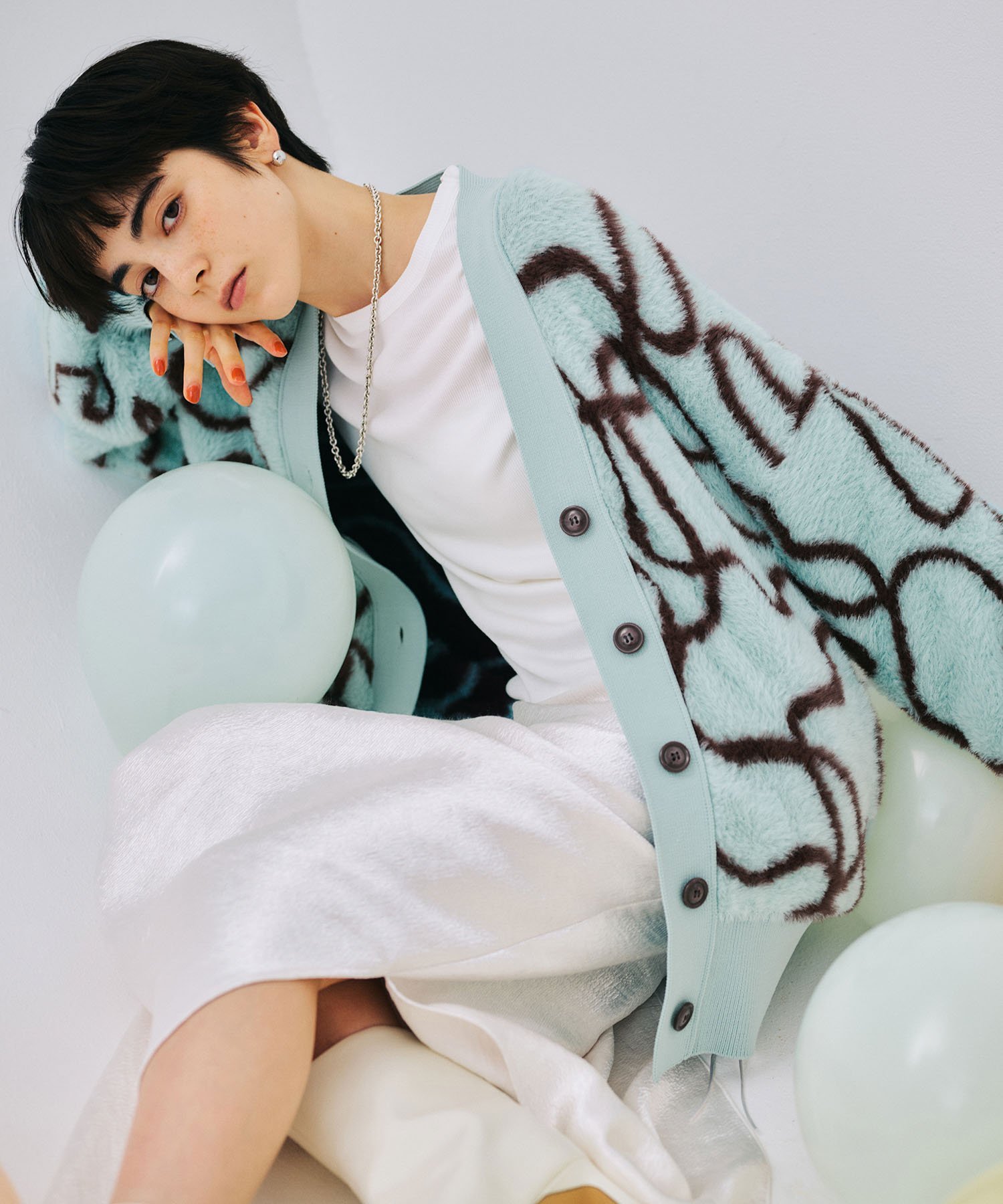 ADAM ET ROPE' FEMME 【WEB限定・新色追加】フェザーヤーンカーディガン アダムエロペ トップス カーディガン ホワイト ブルー【送料無料】