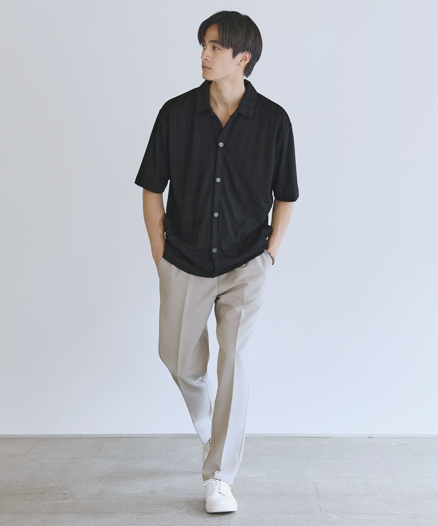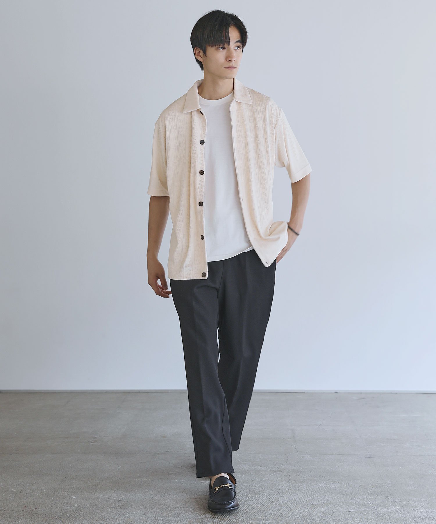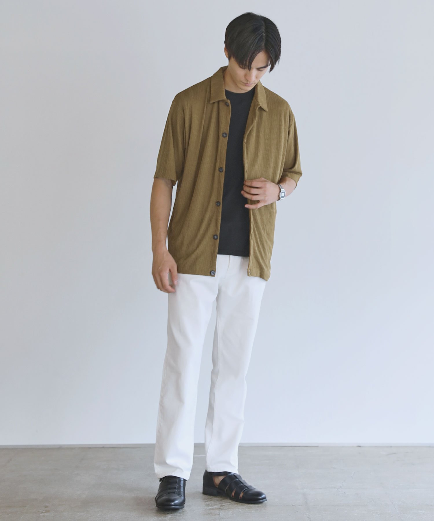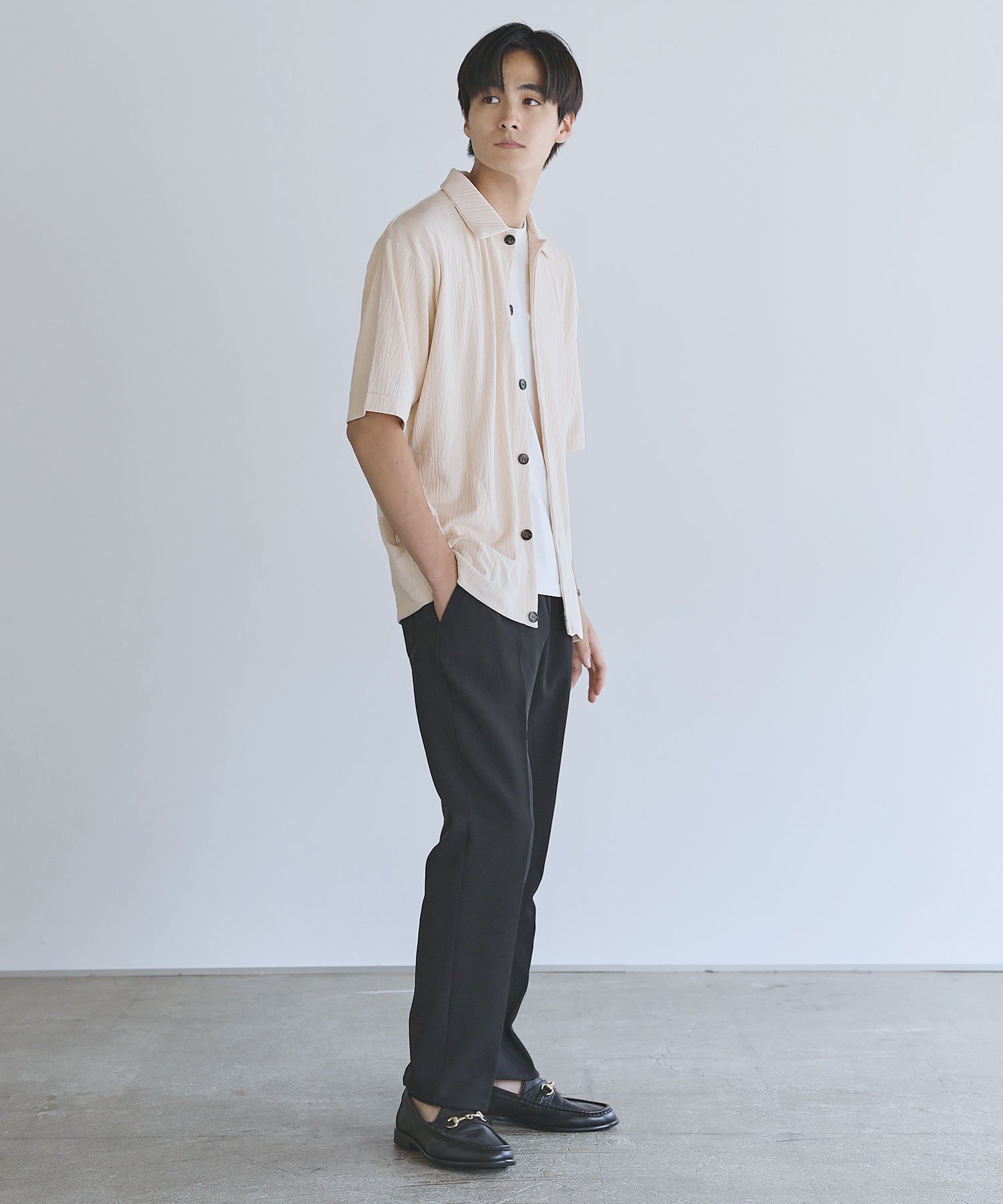 【SALE/5%OFF】ALLOWED TO UNFOLD ドビーニット/ケーブルジャガード半袖シャツカーディガン カジュアル トップス カーディガン ブラック ホワイト ネイビー ブラウン【送料無料】