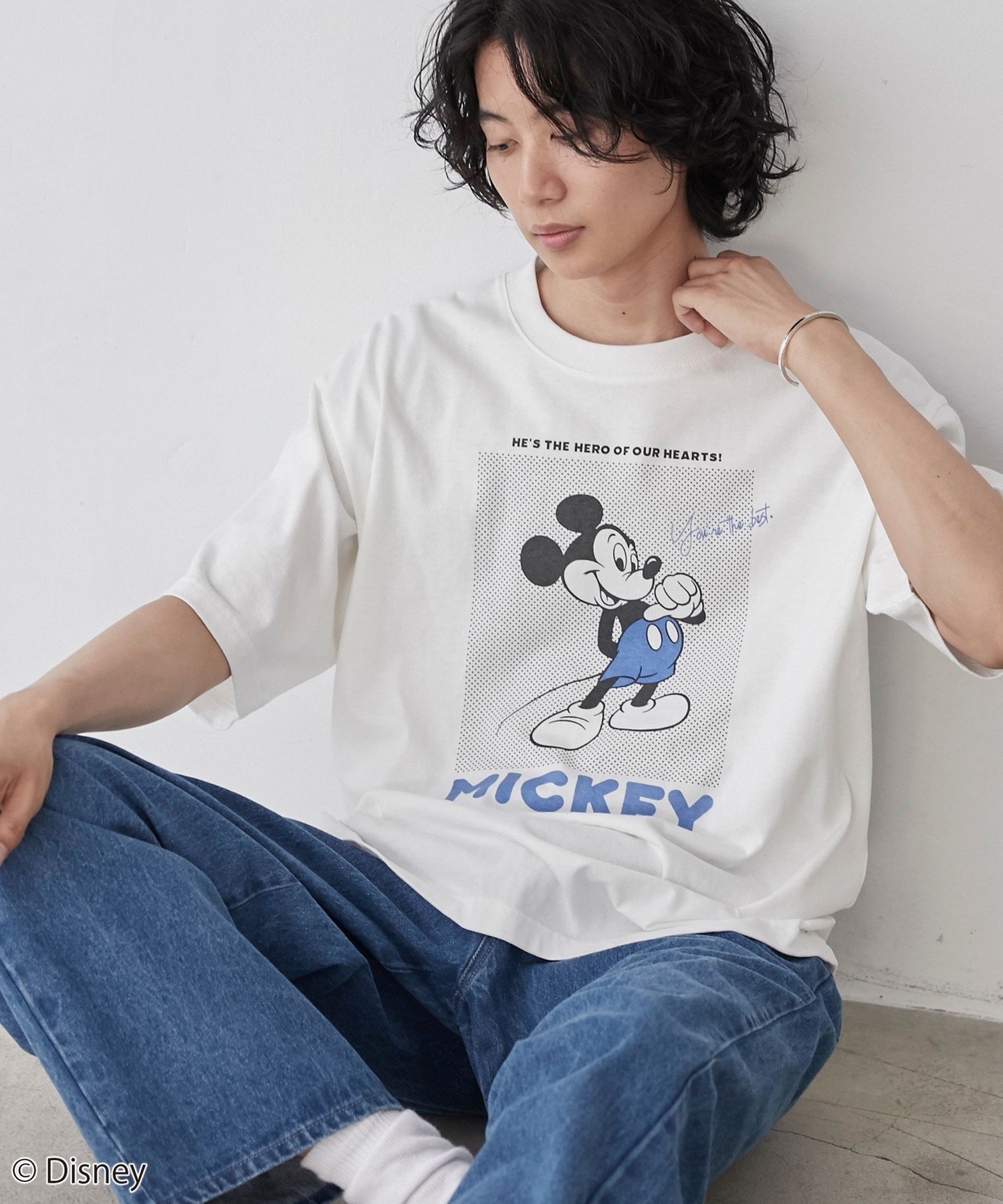 coen coen限定/Disney(ディズニー)フロントプリントTシャツ コーエン トップス カットソー・Tシャツ ホワイト ブラック ネイビー