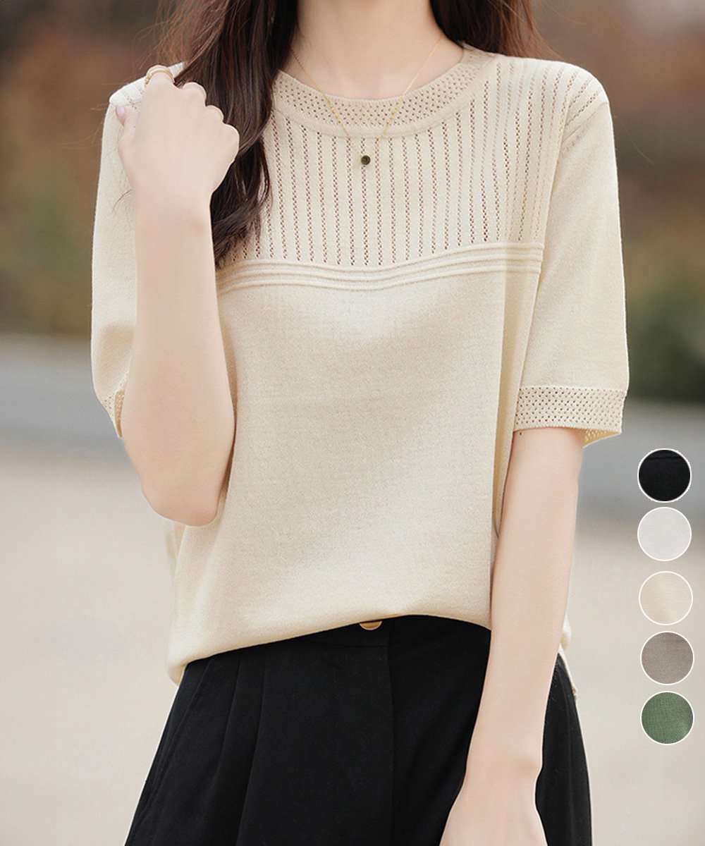 miniministore サマーニット クールネックメッシュニット ミニミニストア トップス ニット ベージュ ブラック カーキ ホワイト ブラウン