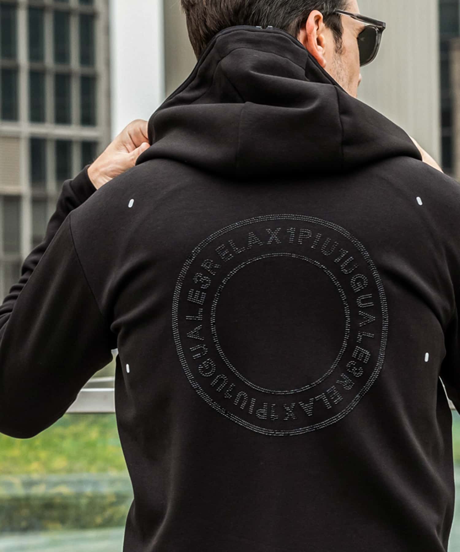【SALE/30%OFF】1PIU1UGUALE3 RELAX (M)1PIU1UGUALE3 RELAX/USO-24085 ラインストーンサークルロゴパーカー シフォン トップス パーカー・フーディー ブラック グレー【送料無料】